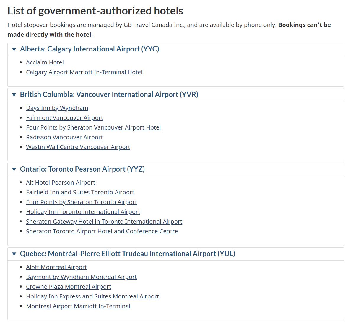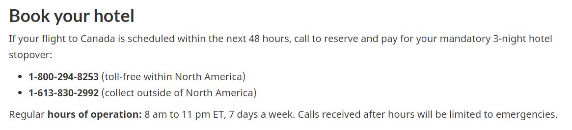 4. 打指定电话(见截图)预定强制···隔离酒店,酒店必须经加拿大政府认可且住满3晚(名单见截图)。费用约2000加币/人(见图56)