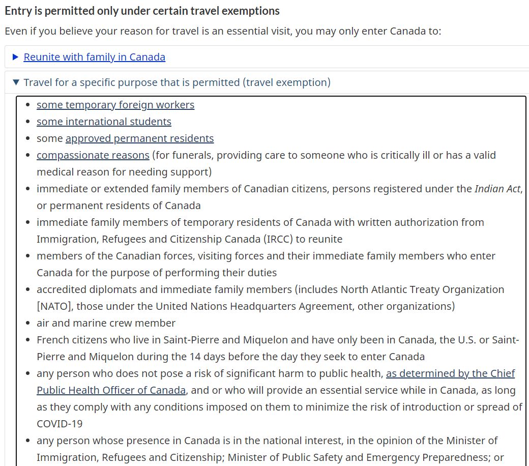 1. 首先要确定自己是否有资格前往加拿大,可以入境的人员包括但不限于加拿大公民/永久居民、难民身份、留学生、工作/就业原因、海员/航司机组人员、外交官等,某些人需要申请特殊赦免(见图二三);