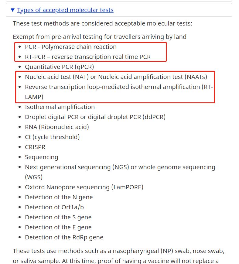 2.在航班起飞前72小时内做新冠检测,建议验PCR,验抗原是不被接受的(见图4)。