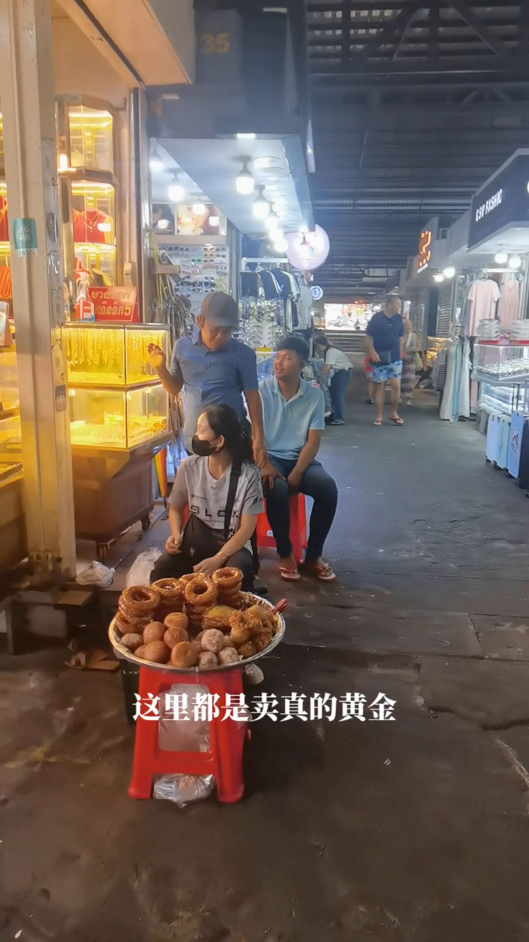 以前来到大市场看到黄金首饰柜台在菜市场旁边,我一直以为是假的,因为国内很多这种地下市场卖一些假的金银首饰,后来才知道原来柬埔寨这边不一样,这里都是卖真的黄金。这咱也不知道,旁边是卖菜的摊位,你这摆一个黄金柜台,这啥操作?这边一排排的都是美发、美甲的。今天是因为已经洗过头了,下次就替你们体验一下高棉洗头。