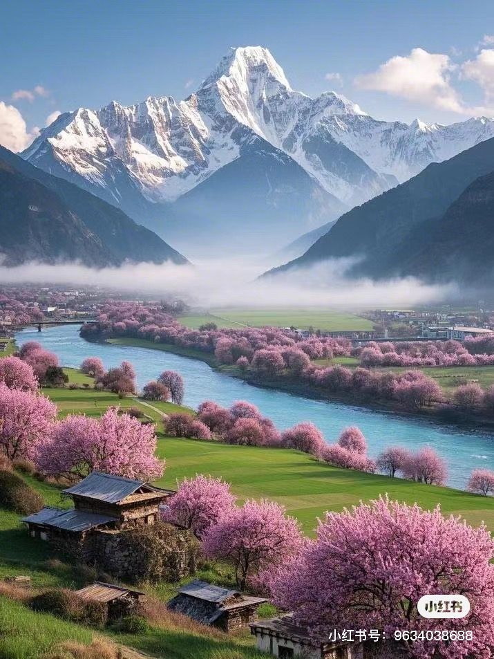 林芝的桃花在雅鲁藏布江边盛开,雪山和峡谷作为背景,让桃花更显粉嫩。游客可以品尝石锅鸡、藏香猪卷饼等美食。