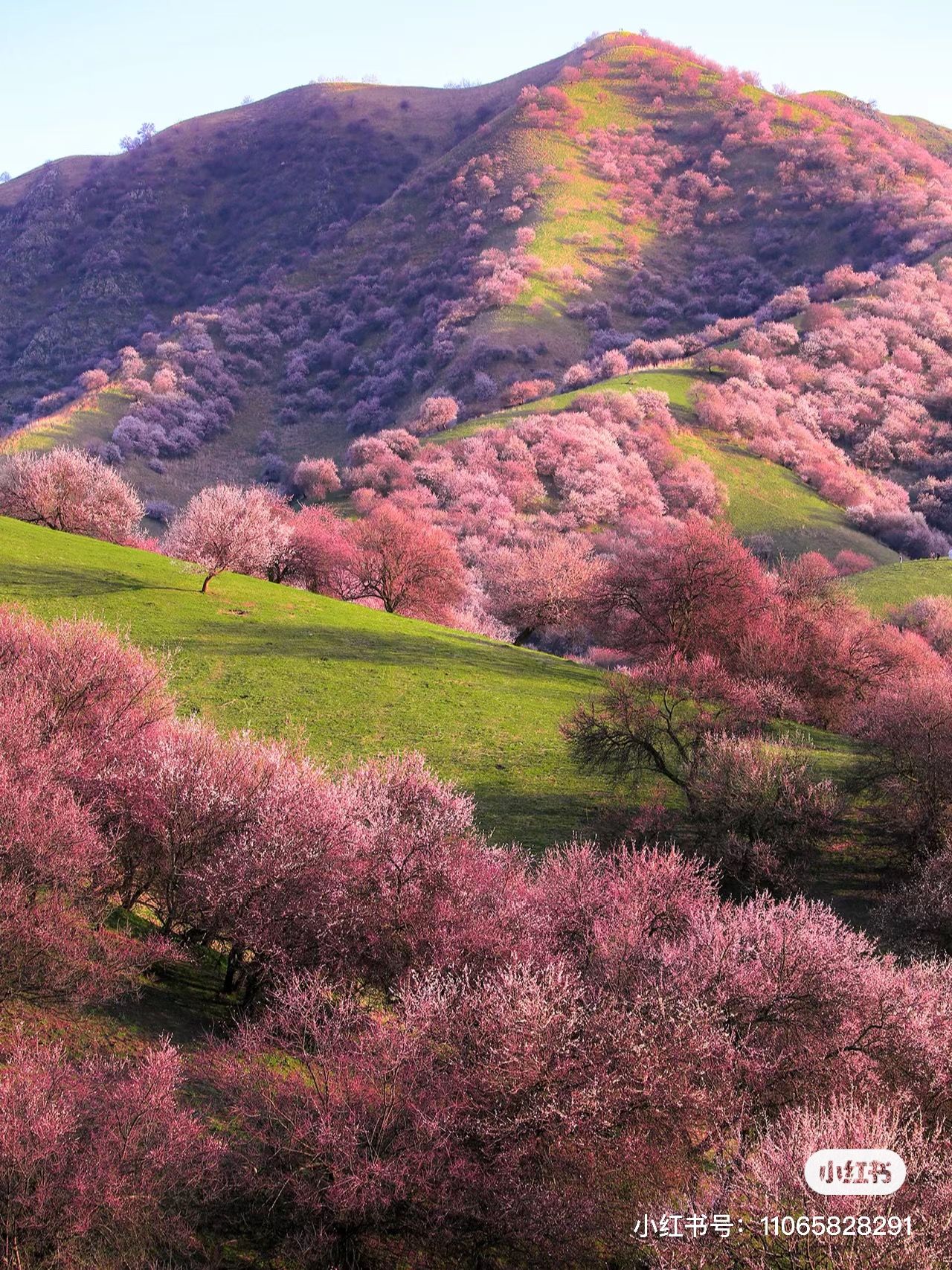 伊犁的吐尔根杏花沟在4月初迎来盛花期,野杏林漫山遍野,草原、雪山与粉色花海相映成趣。哈萨克纳仁、包尔萨克配奶茶等是当地的特色美食。