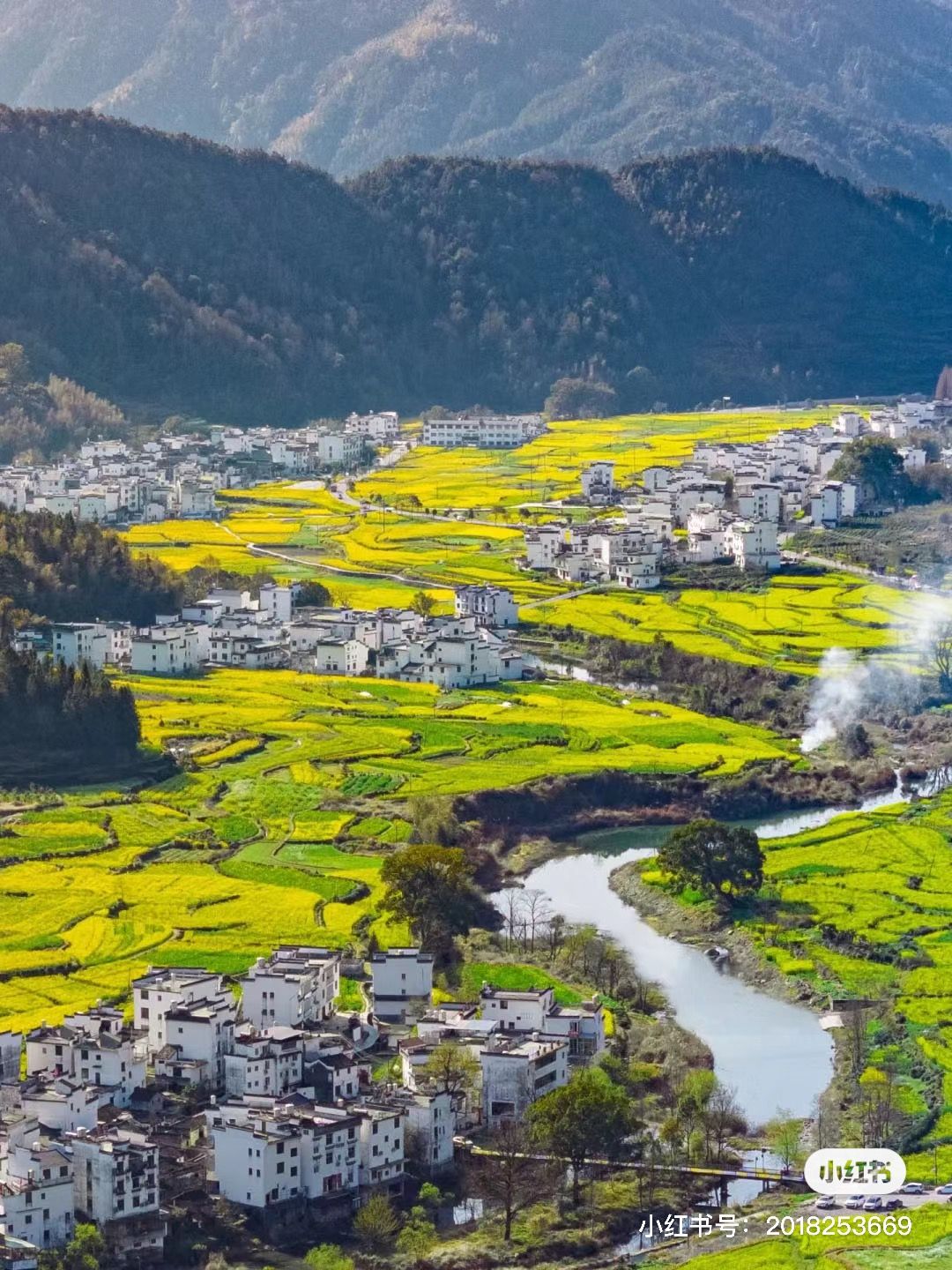 婺源的梯田上种满了油菜花,古村落与花田构成了美丽的画卷。荷包红鲤鱼、糊豆腐等是当地的特色美食。