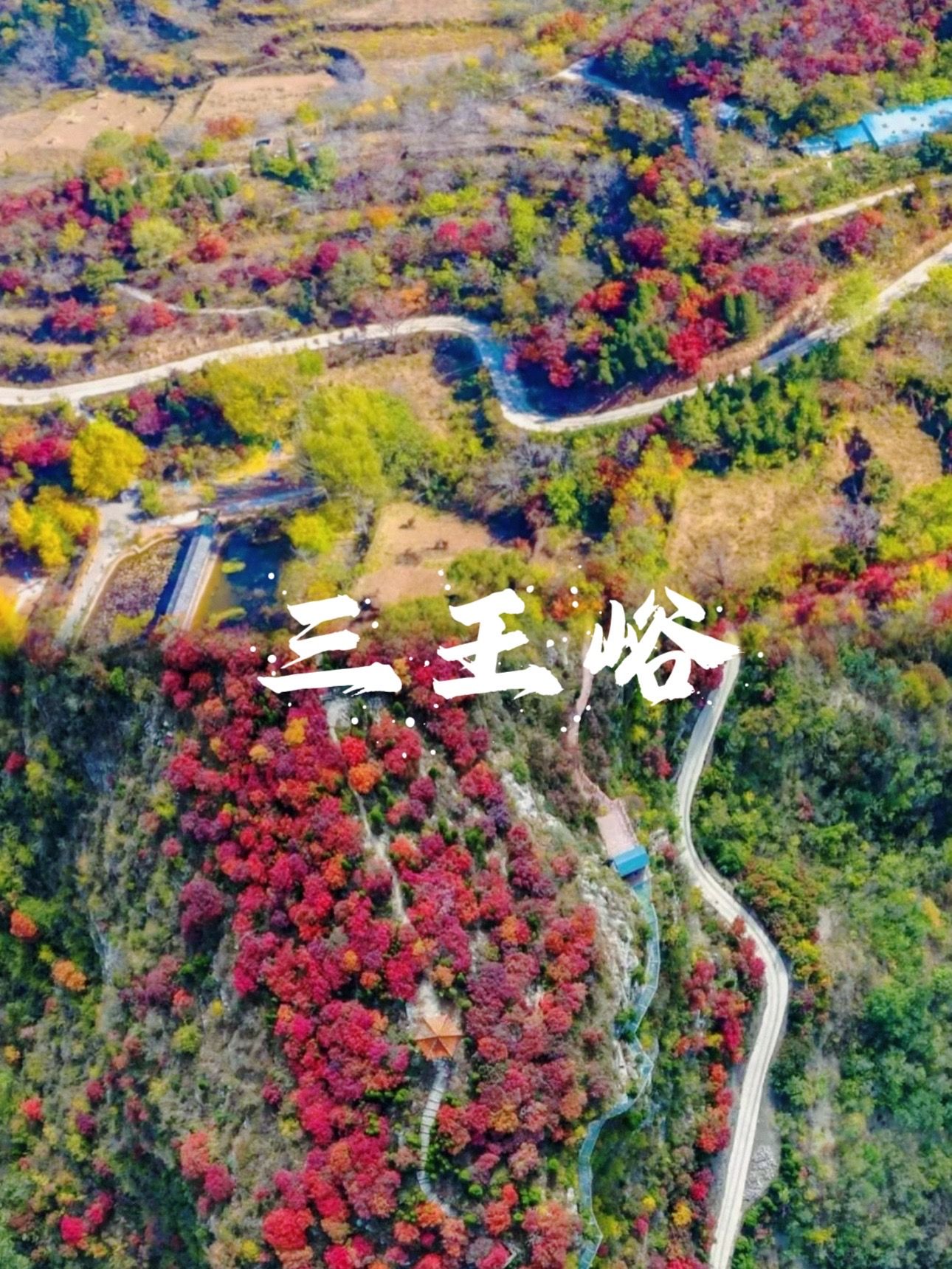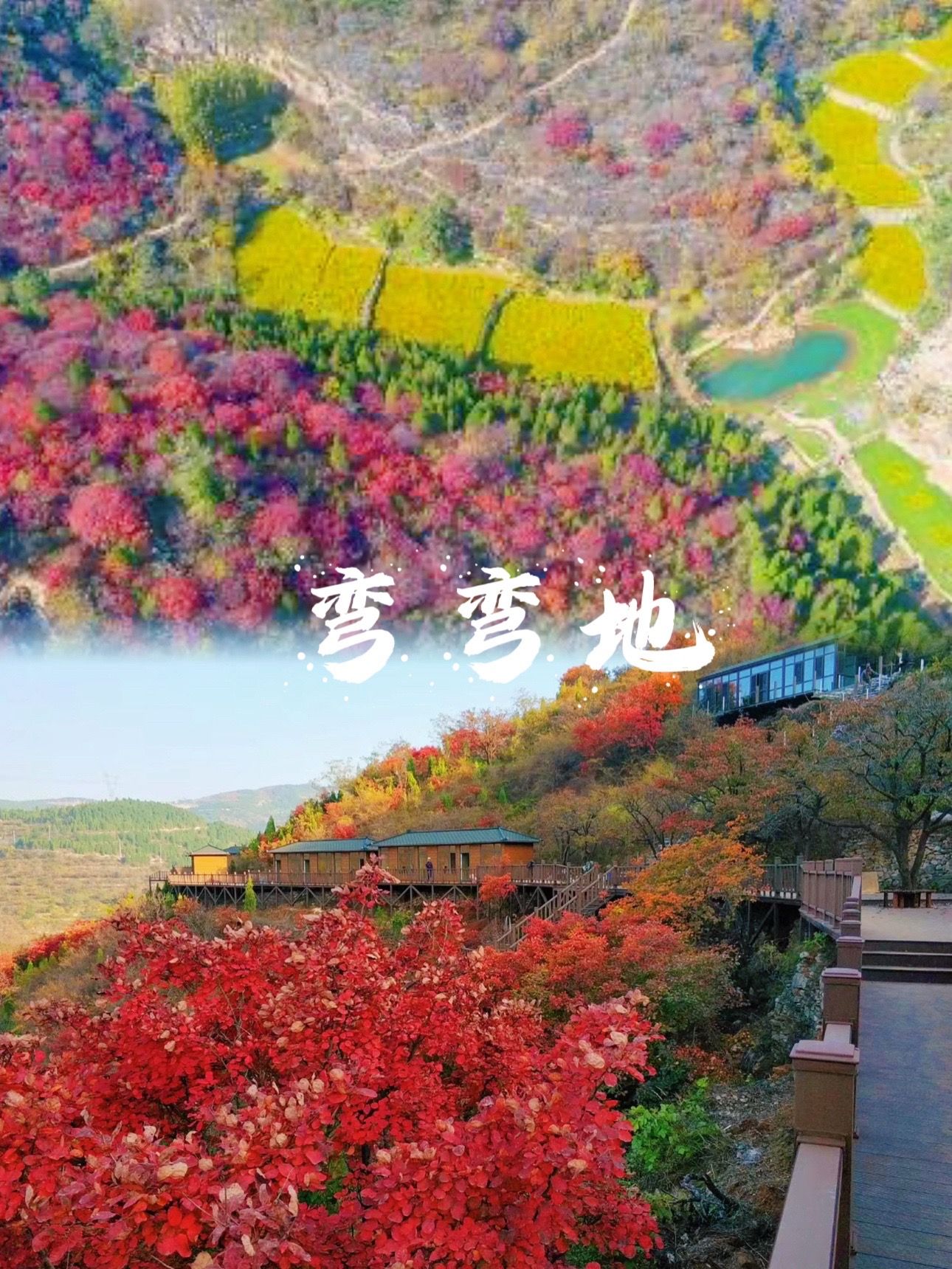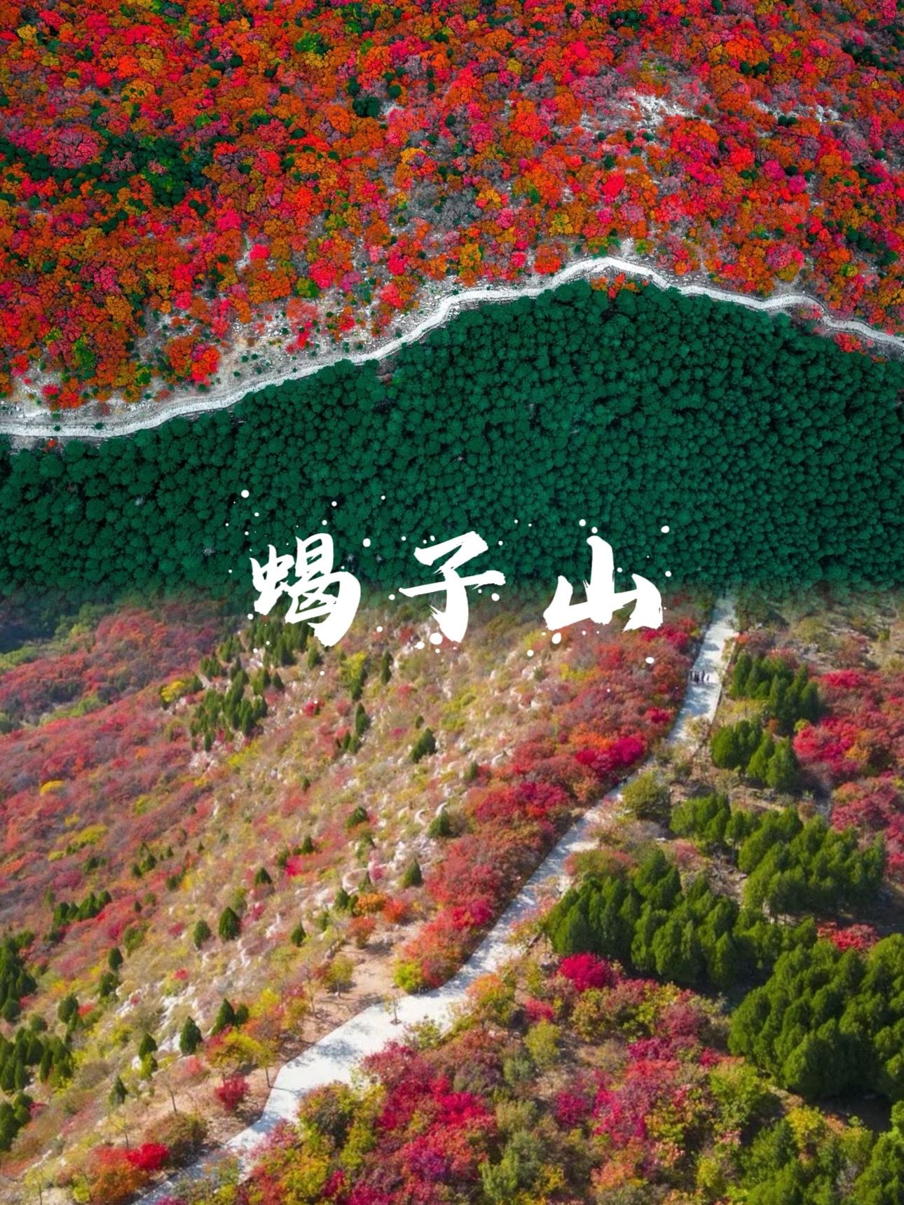 北、西侧山体黄栌成林,高空俯瞰红叶盛景超震撼。