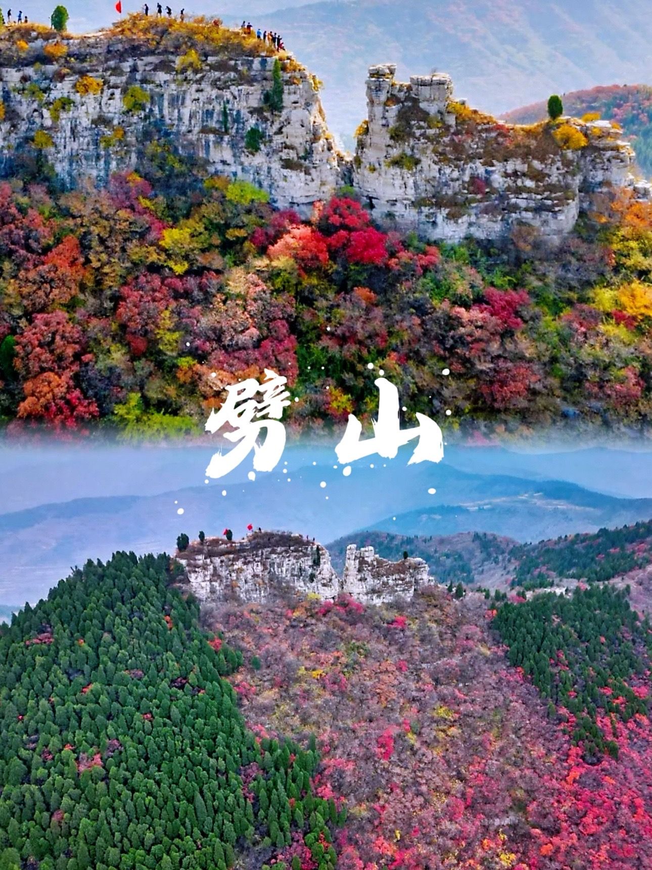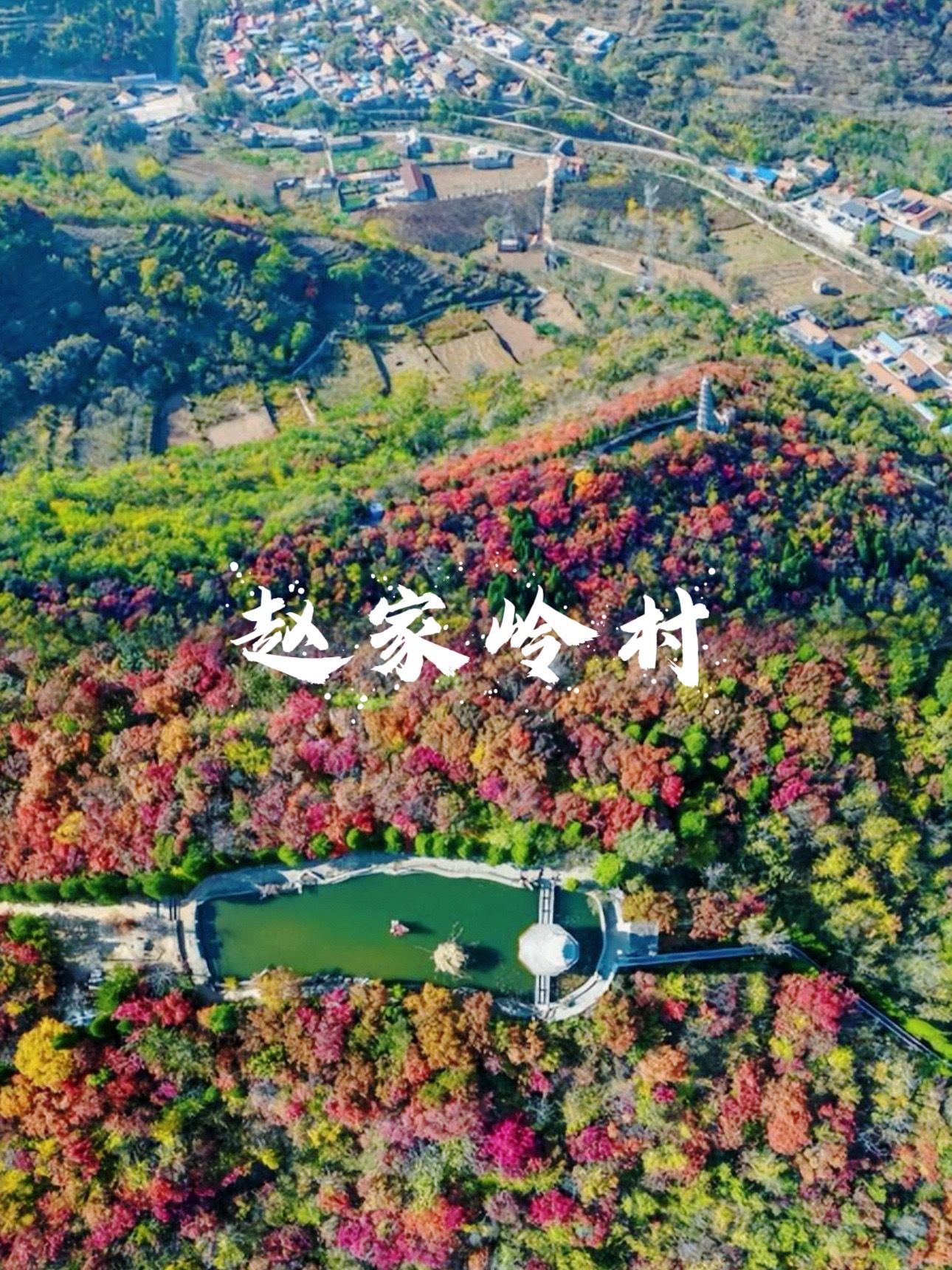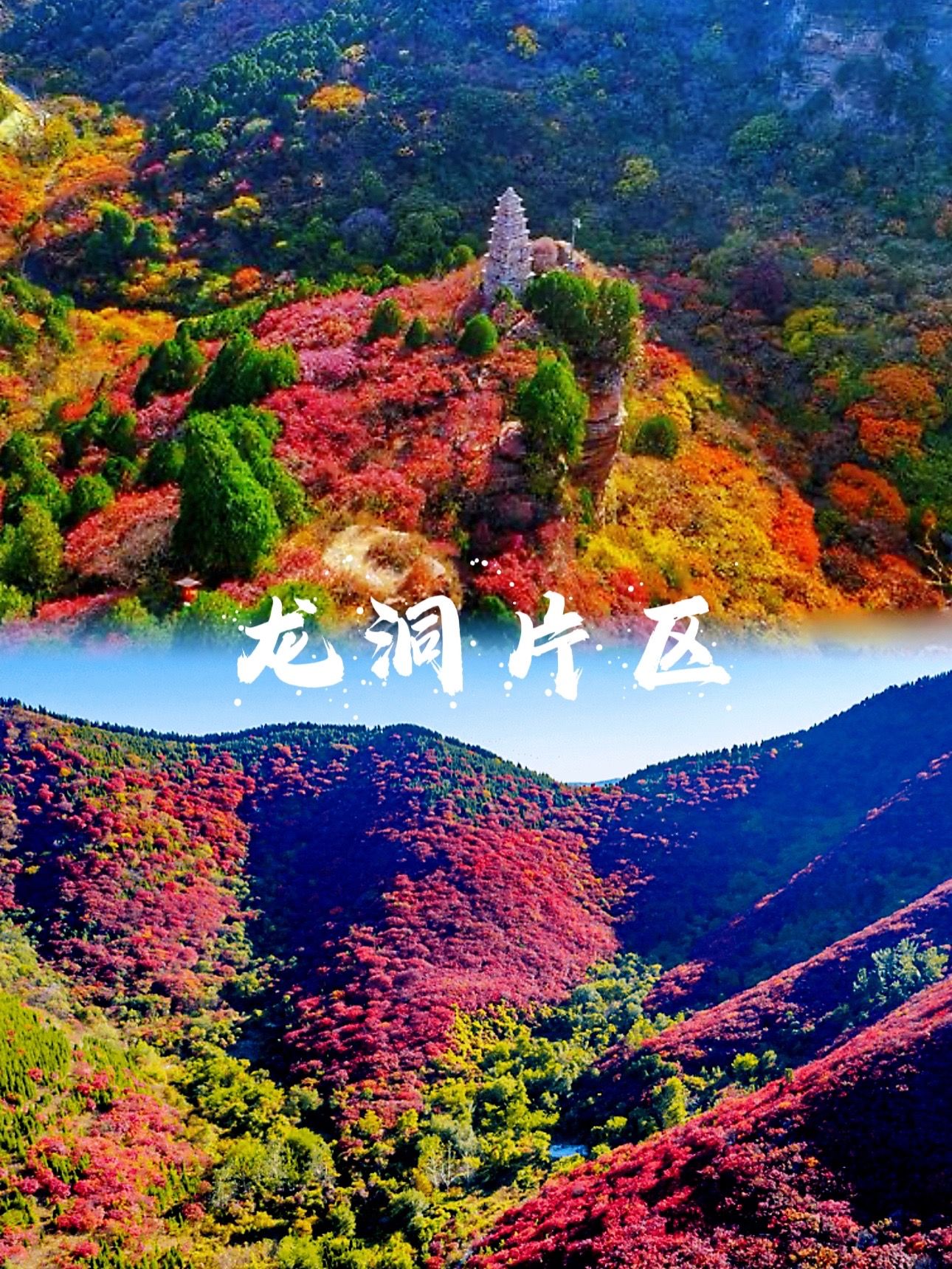 北、西侧山体黄栌成林,高空俯瞰红叶盛景超震撼。