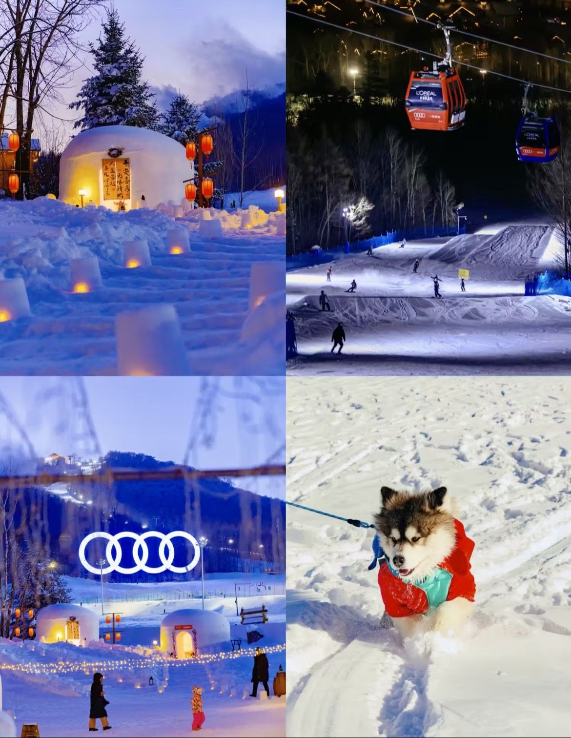 第3天:森林奇趣营+北欧雪屋村+滑雪(夜滑)森林奇趣营蛮有意思的,是很多户外活动集合,比如有雪战(就我们东北的打雪仗)还可以在白桦林里雪地徒步(白桦林东北之外就不太能看到了,冬天下雪更有氛围感)