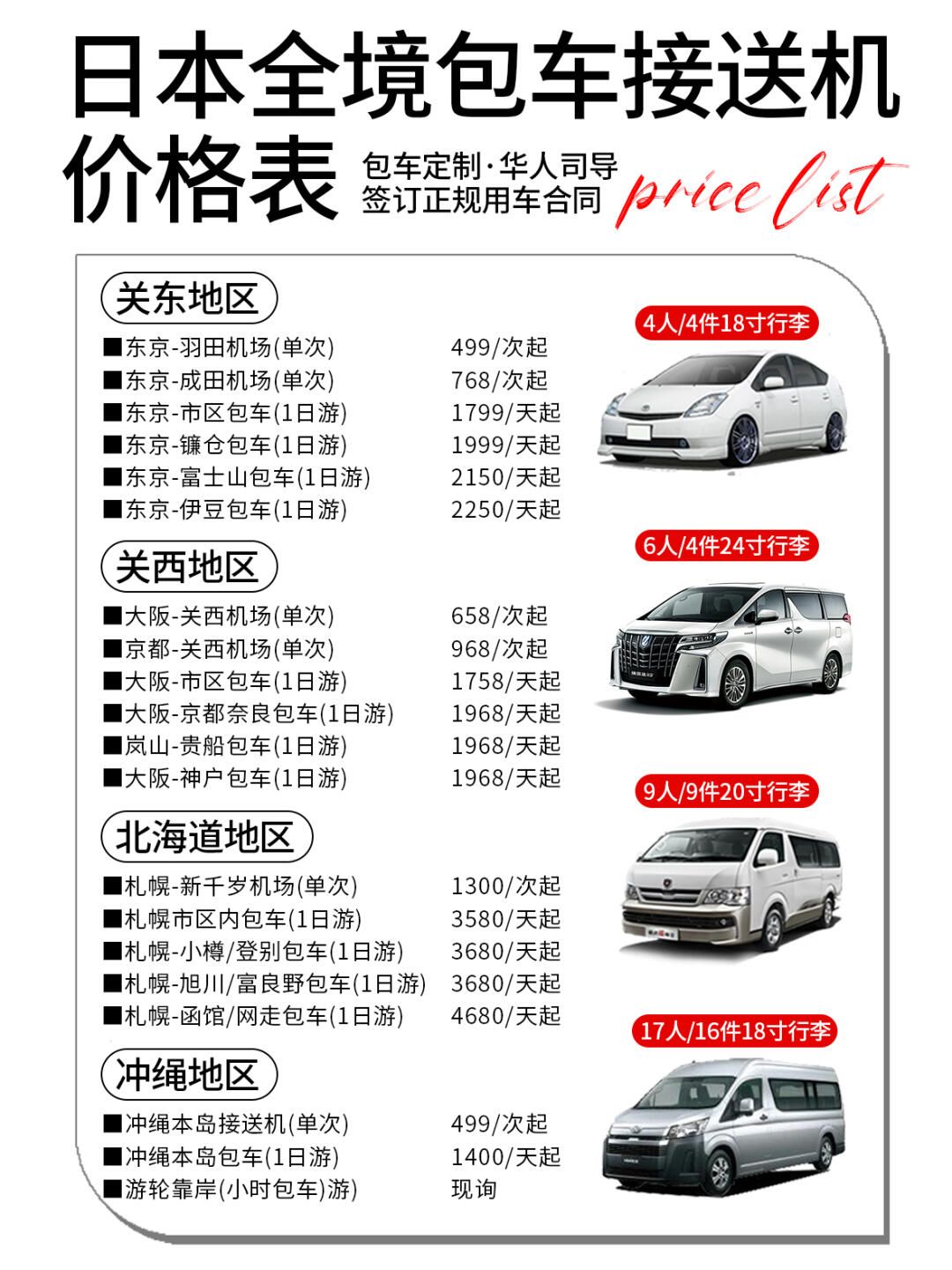 日本【樱花季包车】价格表更新~先用后付假期去日本旅游的宝子们注意日本的游玩景点多,现在正处于樱花季,想要深度游玩的可以选择包车出行哦,既方便又省心我整理了一份包车价格表,大家可以参考