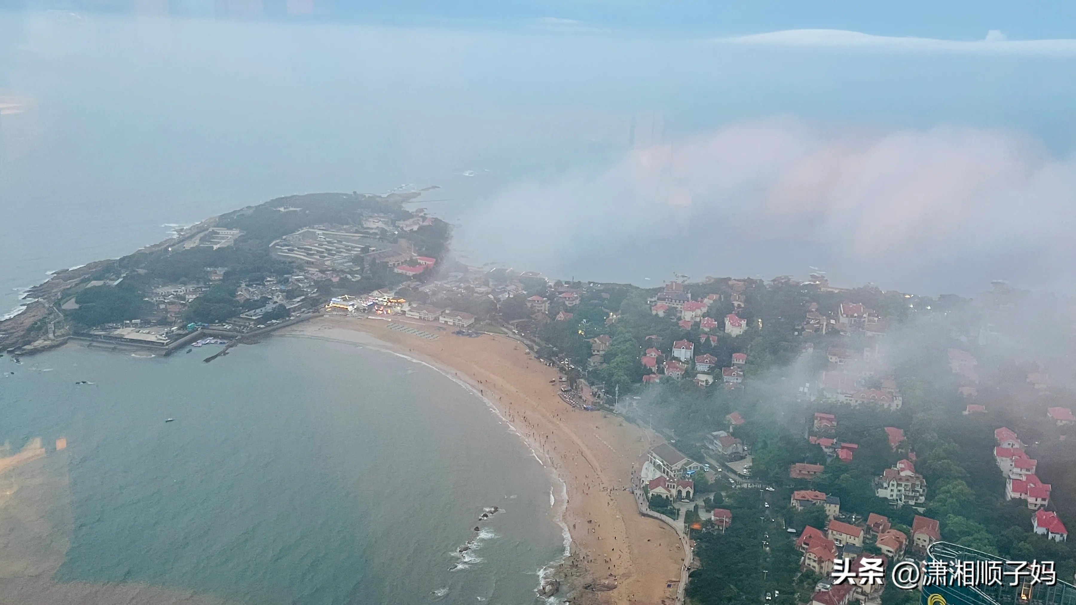 他俩忙完手头的工作,顺子妈从太平角和五四广场city-walk 返回度假村简单梳洗一番。三个人汇合后,打车直奔位于海滨的瑞吉酒店59层自助餐厅。