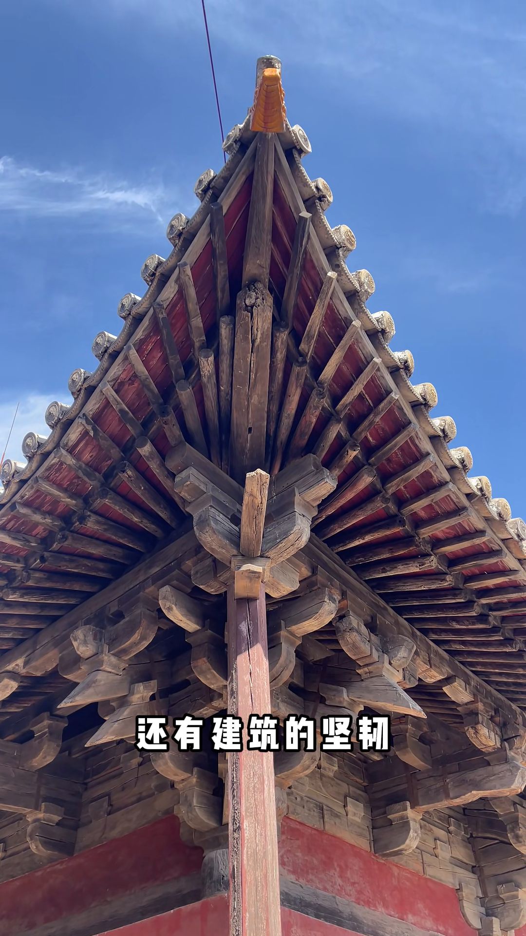 它两根短梁用榫卯相连,甚至在它的铆接处还设置着大脚梁。这种结构看似岌岌可危,但是在千年历史发展过程中,却岿然屹立。大家觉得是不是对先祖的智慧要点个赞?