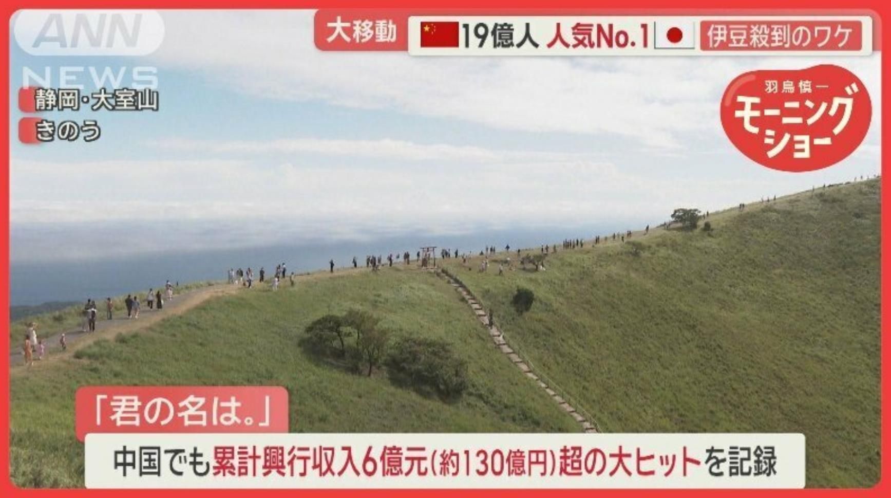 中国游客也成为访问日本外国游客中人均消费金额最多的,人均13.74万日元。很多游客是奔着感受“日本魅力”,喜欢日本饮食,希望购买质量放心的产品,体验动漫及游戏而去的。尤其是在中国社交平台因为动漫影片《君之名》而人气爆棚的位于静冈县伊东市南部的大室山,由于被日本政府指定为国家天然纪念物,酷似影片中的场景,从山顶可以直接眺望伊豆诸岛和富士山,成为中国访日游客的新地标。日本航空旅游分析师鸟海高太朗对此分析——中国游客正在从以前的团体游向个人游转变。现在来日本的中国游客相对来说收入高的阶层变多了。在购物习惯上,与以前的大量购买相比,不如说是想要精准的东西。另外,日本空气清新、干净整洁,尤其是饮食的饭菜好吃,能得到在国内旅游无法得到的东西。再加上坐飞机几个小时就能到达一些地方,抵达目的地的距离较近等因素,使日本现在很受中国散客游的欢迎。