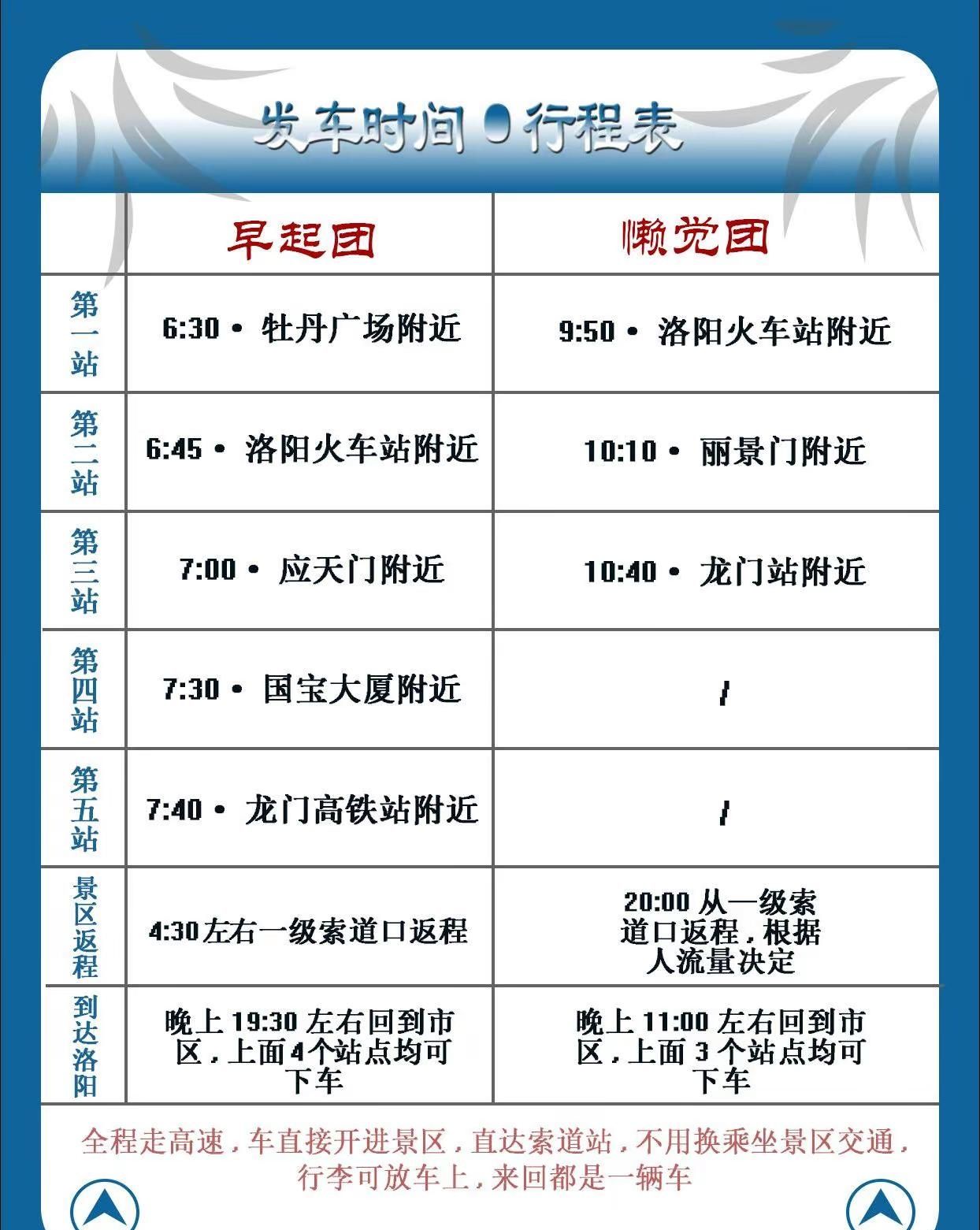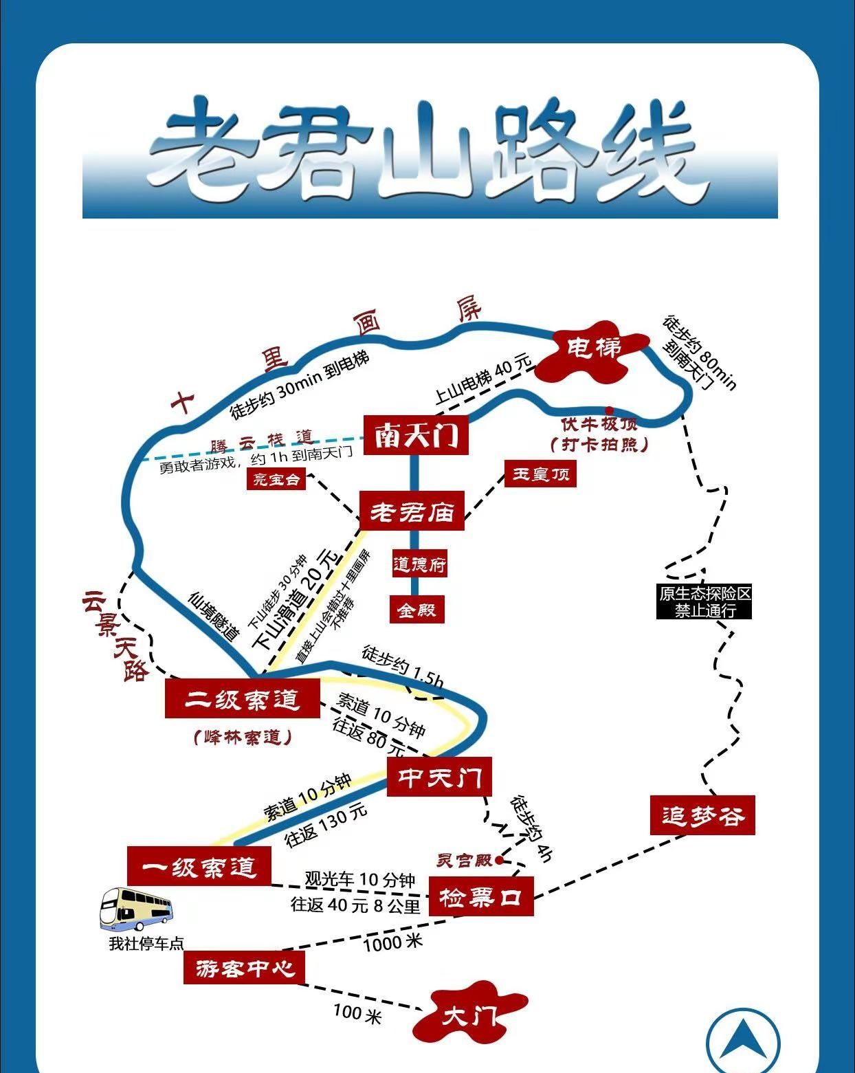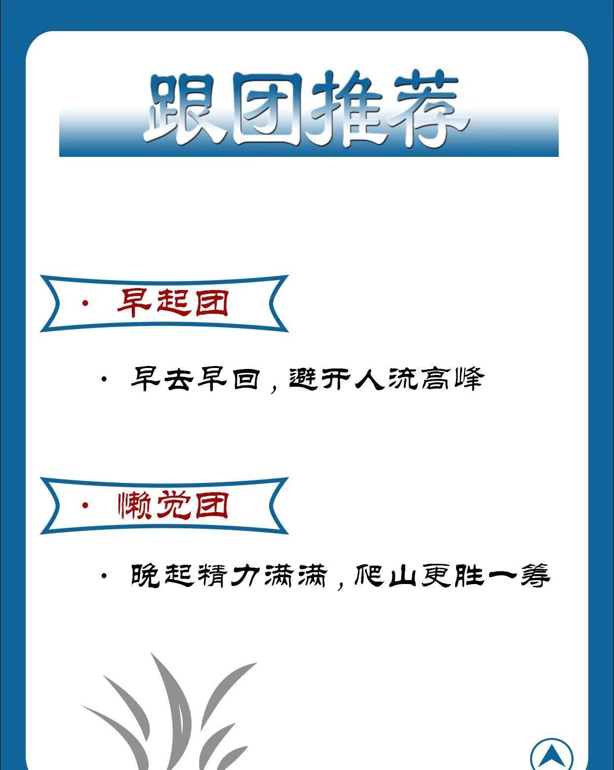 老君山省攻略来了,老君山跟团太划算了。老君山省攻略来了,老君山跟团太划算了老君山在洛阳省栾川县,距离洛阳市区还有100多公里,并不是到了洛阳就到老君山了。很多人做攻略做的头疼,下面给大家说一下,去老君山省省心的办法跟一日游大巴车,并不是我在做老君山一日游才这样说,是老君山一日游真的省又省,听我细细给你讲~来老君山为什么要跟团?跟团不用换乘景交,老君山距离洛阳市区170公里,并不是到了洛阳就到老君山了,坐公共交通只能到大门口,要再换乘景区小交通20。一日游大巴车可以到索道口跟团省心,导游会帮忙办票,讲路线,不用操心做攻略,到了也是自己玩老君山跟团价表?A套餐(12周岁以下且1.4米以下首选):85/人 往返车费保险导游‼B套餐(60 岁以上,现役军人,残疾人等特殊免票人群首选):215/人 往返车费一级索道往返保险导游‼C套餐:255/人,往返车费门票一级索道往返导游保险‼老君山发车时间和上车地点:早班车:7点左右出发,下午16:30返程晚班车:10点左右出发,下午20:00返程天天发车,一天两班,走高速,到索道口,不用换乘景交,行李可放车上,到了自行游玩,住的地方离那个上车点近从哪上车老君山行程安排:爬山路线:检票口——一段索道——中天门——十里画屏——南天门——金殿道馆群老君山检票口索道口,7公里山路,中间没什么风景,坐景交20元,来回40.跟团的话到索道口,不用换乘景交一段索道中天门,坐索道15分钟,爬山5小时。这段是盘山公路,没什么风景,一段索道要坐!中天门十里画屏,坐索道15分钟,爬山1—1.5小时,有两条路,建议走右手边木栈道,缓!十里画屏南天门,风景很好,精髓随景点都在这,不拍照1.5小时,拍照2小时左右南天门金顶道观群,66个台阶,15分钟就到了老君山旅游攻略就写到这里了,希望大家有一个愉快的老君山之旅#洛阳旅游 #老君山雪景 #洛阳老君山 #老君山#远赴人间惊鸿宴 #这个冬天一定不能错过老君山
