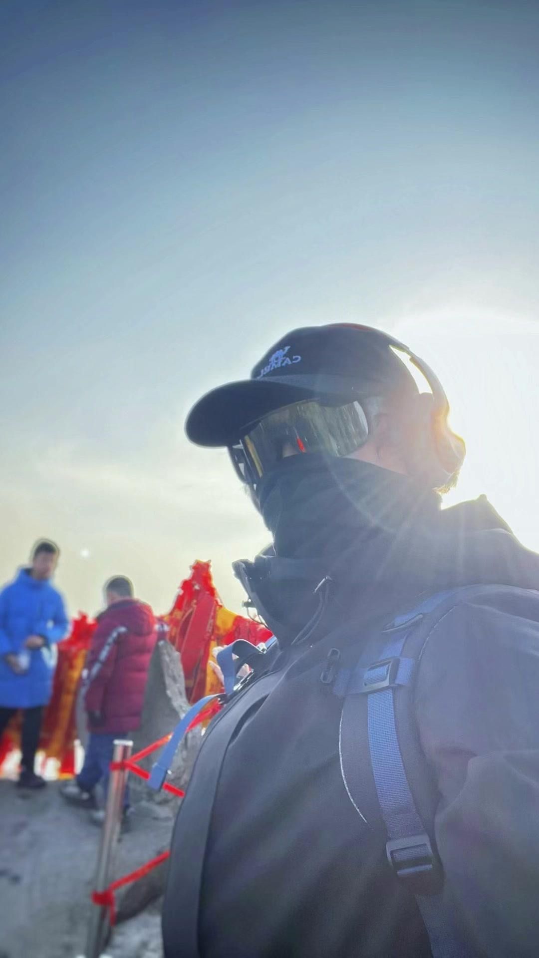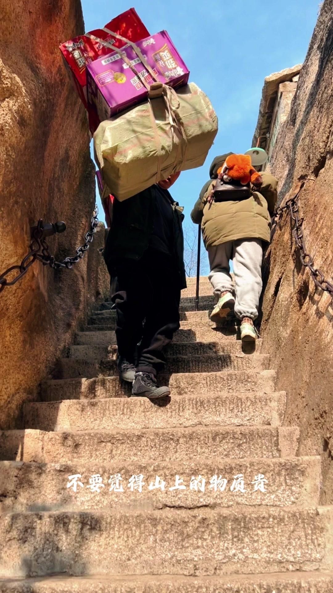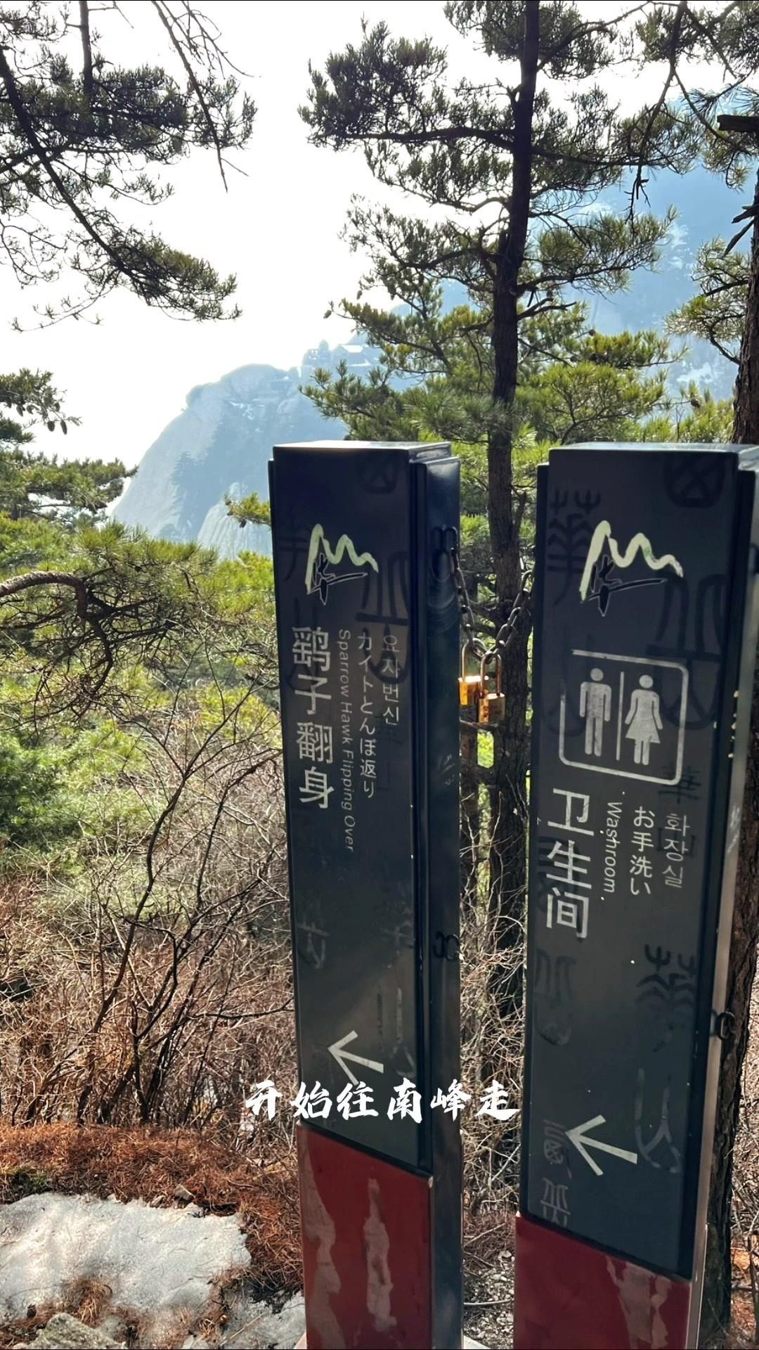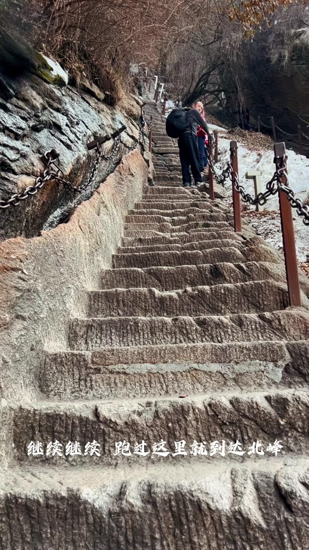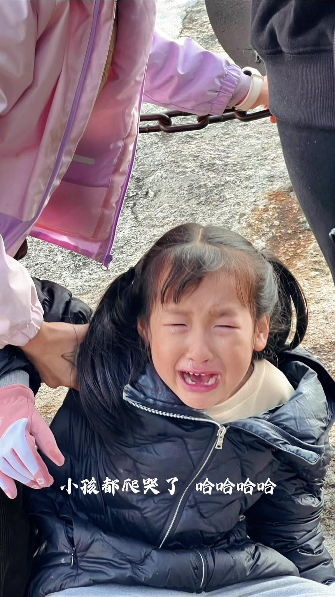 北峰打卡:第一快打卡石,这猫猫居然吃零食,不挑食的肥咪,忍不住来一张。继续从北峰出发,接下来是一小段爬升,一点都不高,真刺激。在这里俯视北峰,继续继续,冲冲冲。小孩都爬哭了,哈哈。