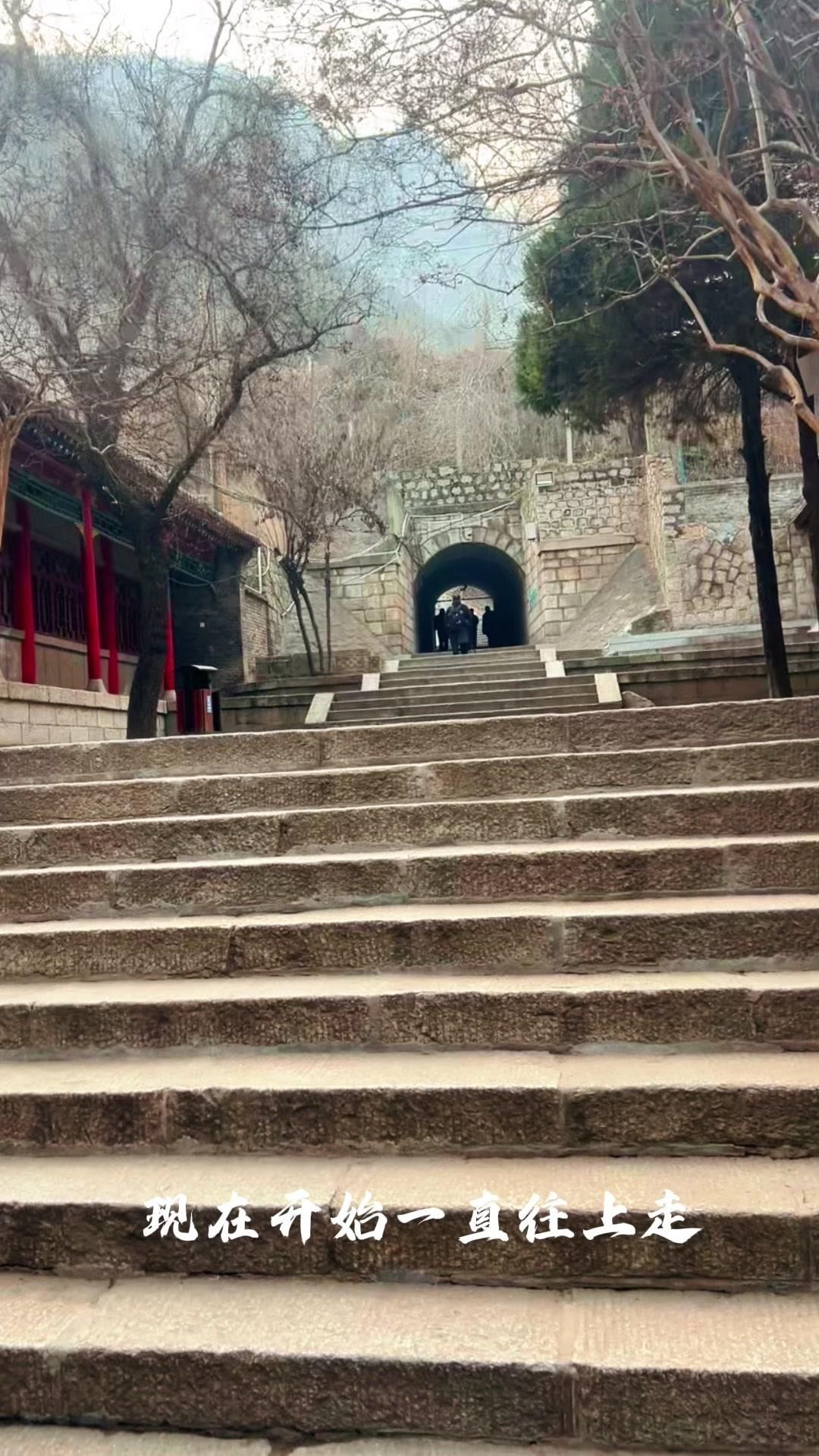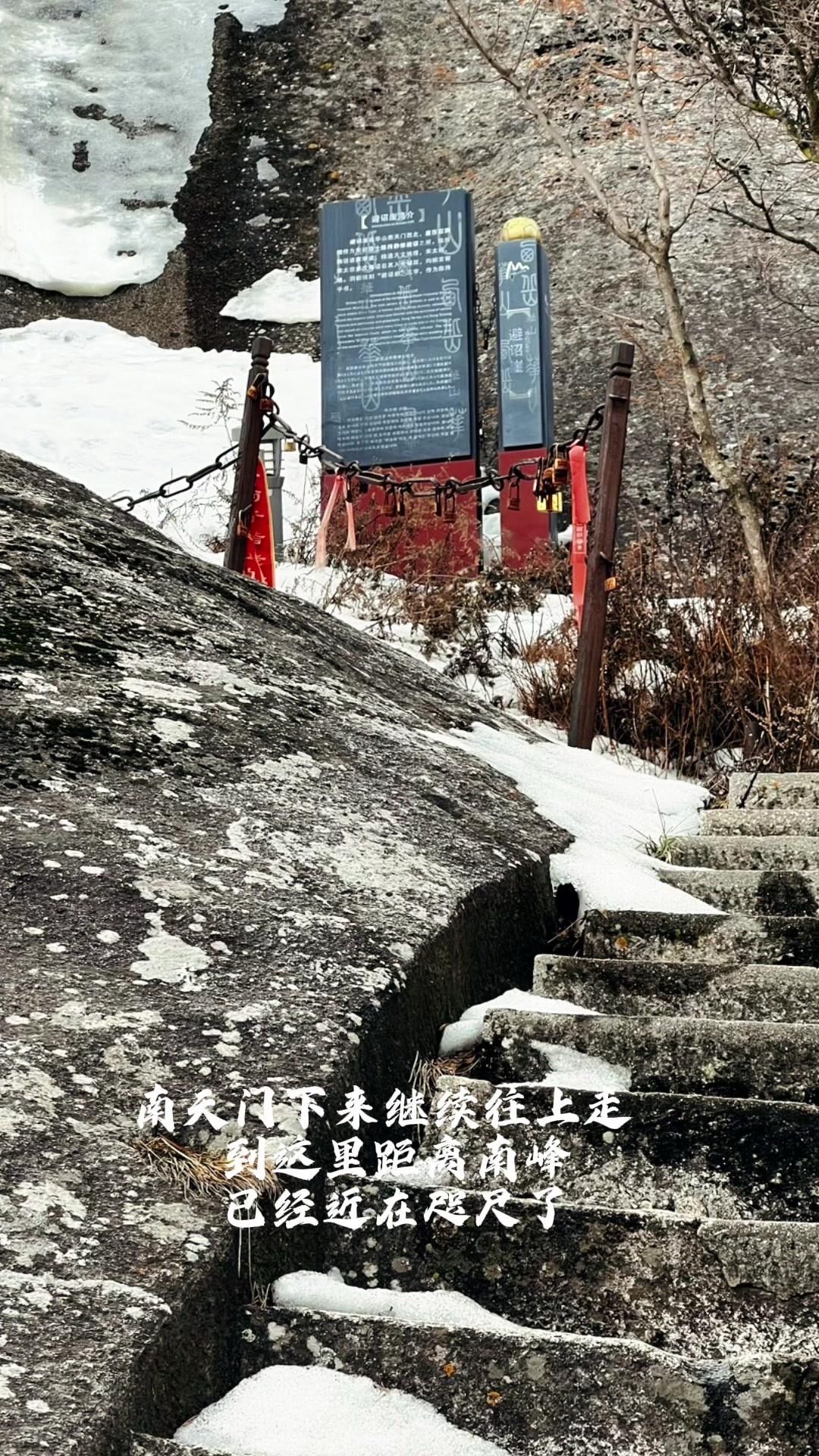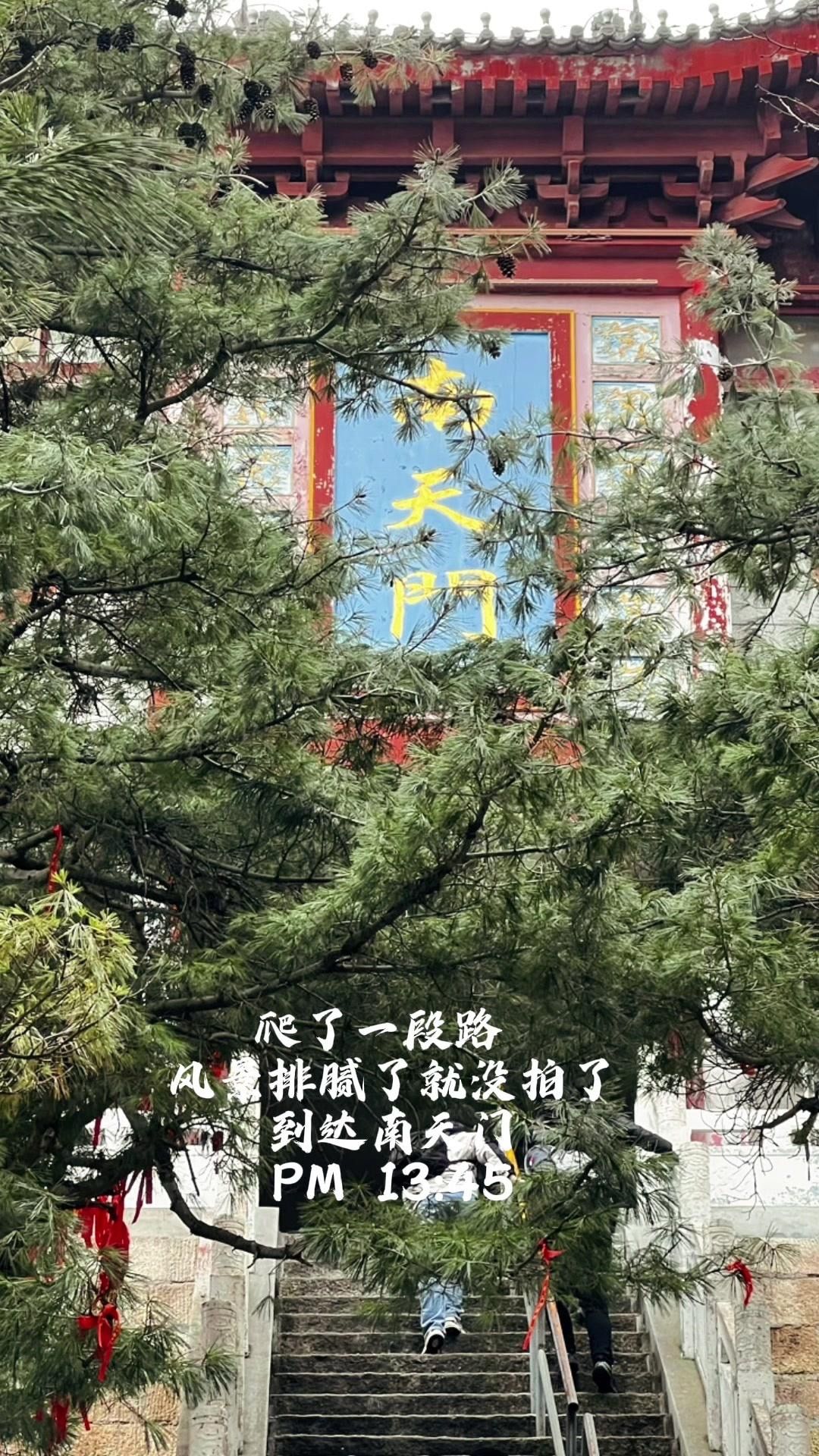 阶梯爬升:现在开始走阶梯,初见端倪。接下来全是这种陡坡的阶梯,一点都不累。有个小转折点,休息一下,到达九天宫。看到这里都以为这是接下来的路,结果不是,这边被封。望不到头的阶梯,回头看看脚下的路,Am12:58,照片看不出来,坡度感觉有70度了。