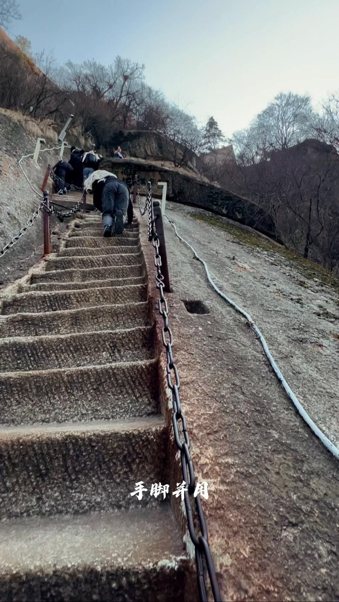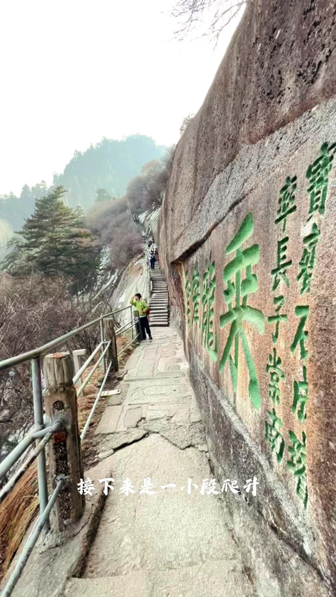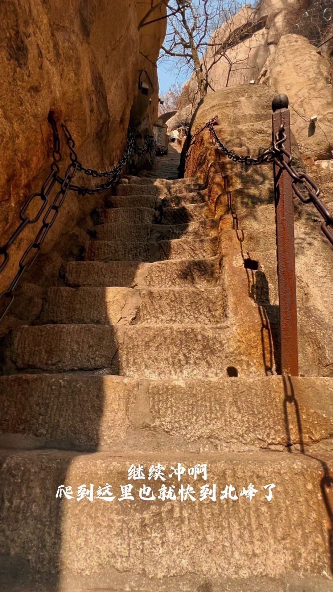 爬升过程:好清澈的山水,看到就心情放松。接下来一大段都是这种路,眼望不到头,目前在慢慢爬升。到达华山第一关,AM11:08,好美啊,享受。到达后门,冲啊,我要爬到顶峰。
