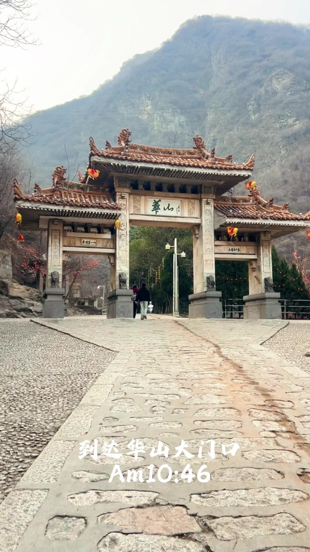 到达广场:从玉泉院进入,进去之后左走看箭头,经过玉龙宫,到达华山大门口,感觉进入华山的结界中。,走一小段路到达华山捡票口。