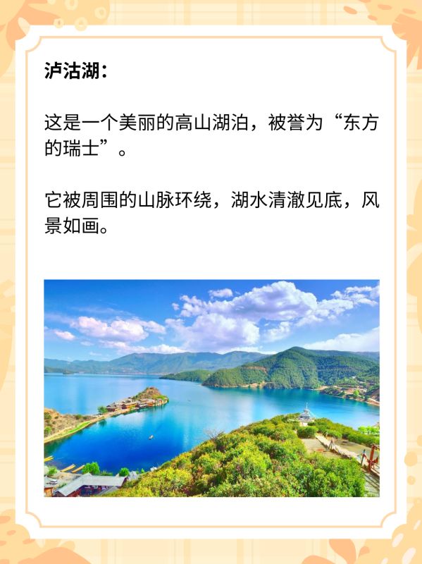 这是一个美丽的高山湖泊,被誉为“东方的瑞士”。