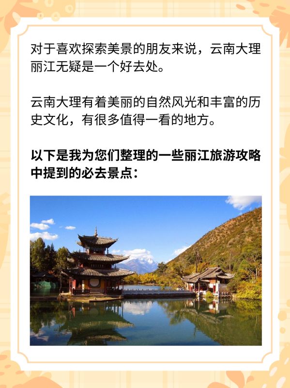 对于喜欢探索美景的朋友来说,云南大理丽江无疑是一个好去处。