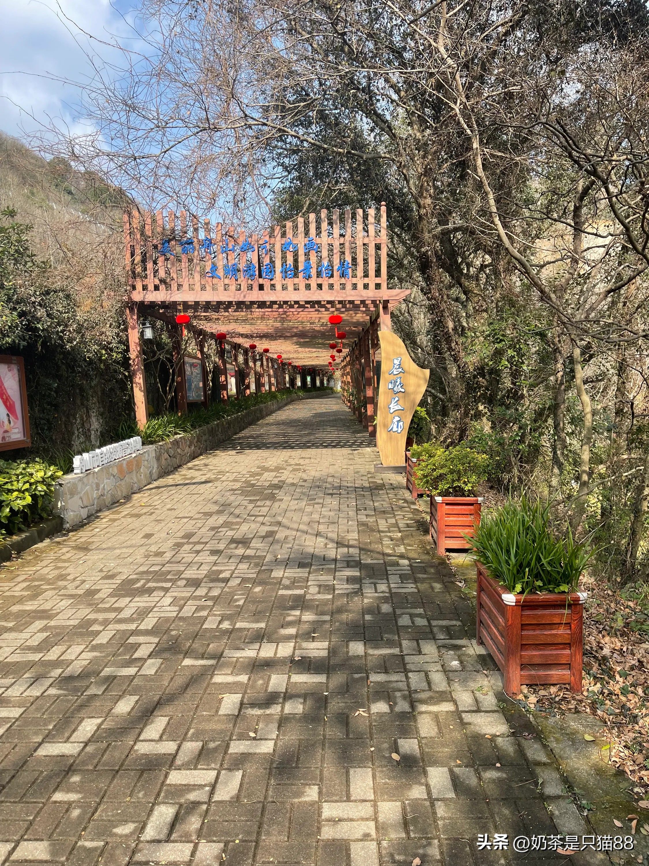 我们从晨曦长廊进入,里面覆盖了很多植被,像枫香、栎类、香樟、松木、杉木等,空气清新,走在稍有点坡度的路上,锻炼的好去处。