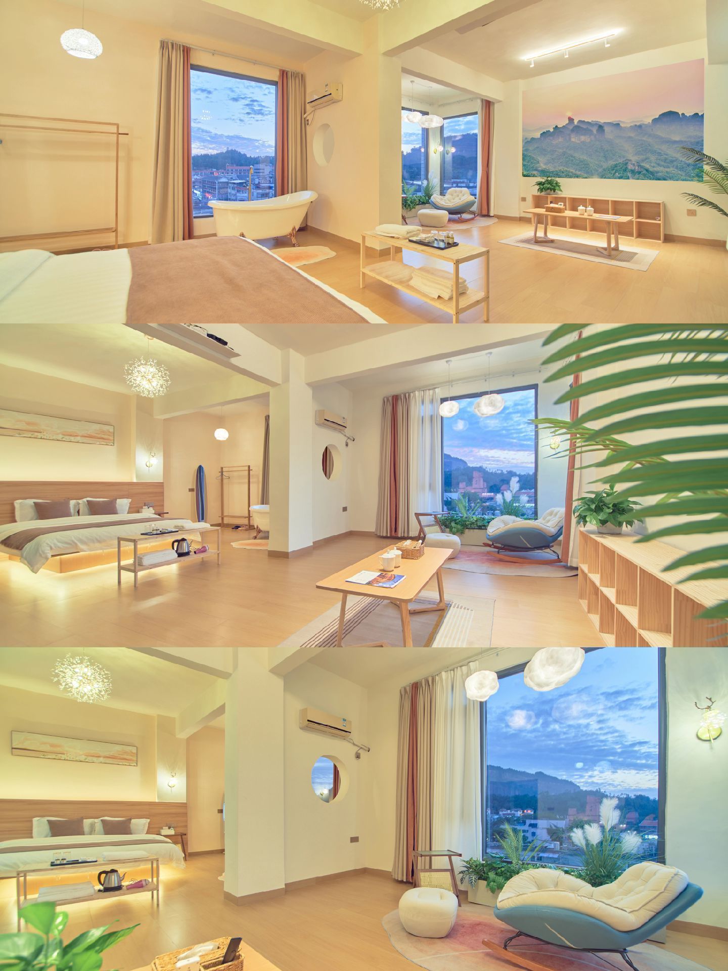 在景区大门口,出入景区非常方便,有电梯,落地窗,在房间就能看到丹霞山景,提前联系老板娘规划好路线,还能帮忙买好优惠票,包车也是老板帮忙联系的,非常耐心热情!