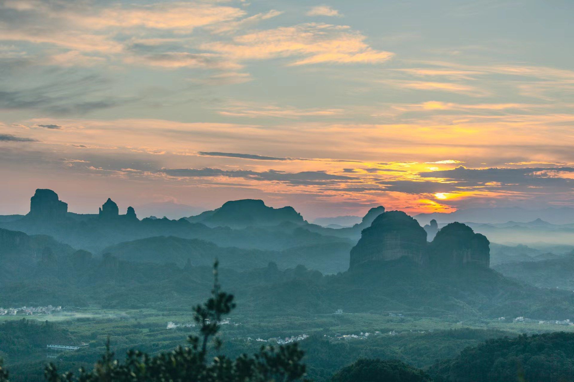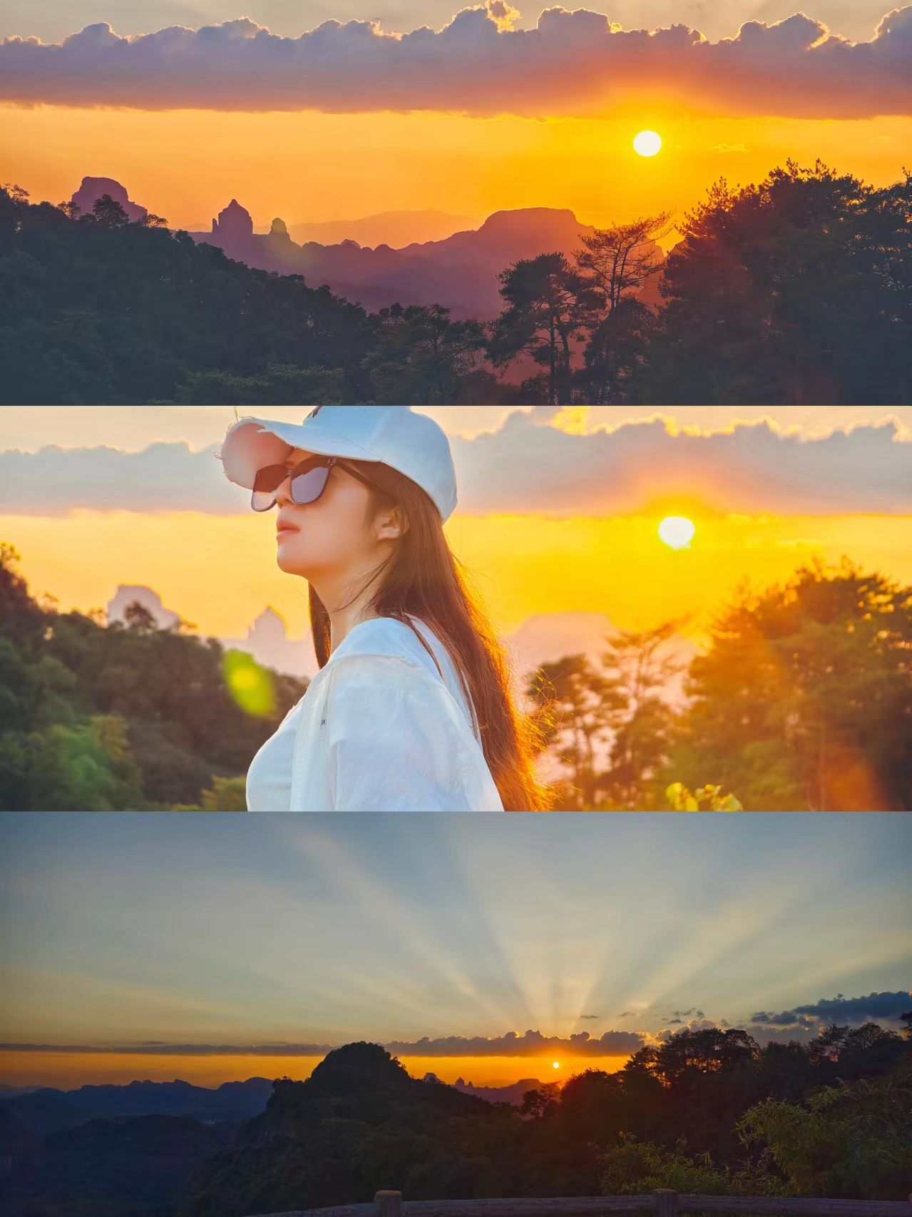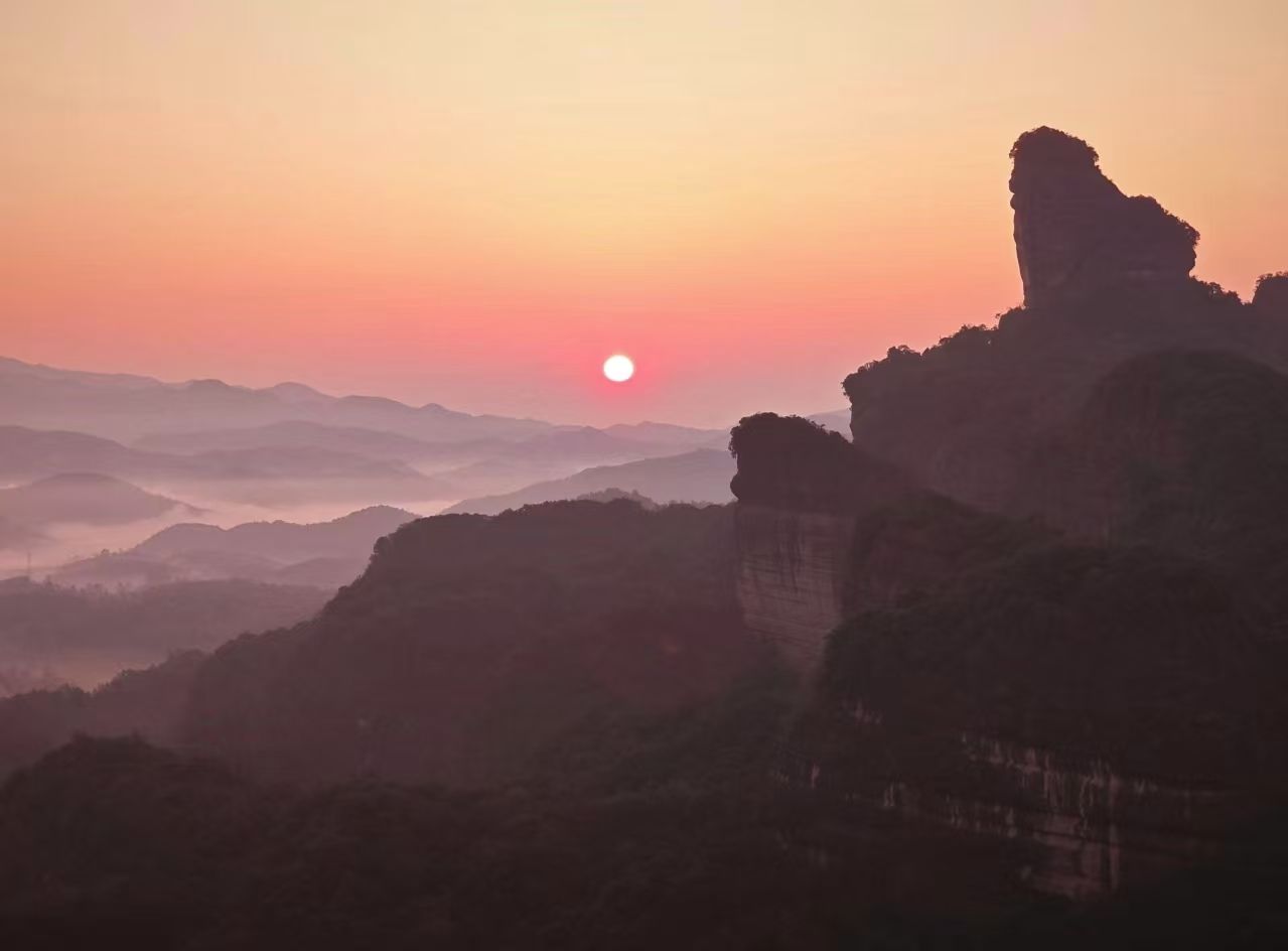 4、丹霞山景区挺大,分长老峰和阳元山,看日出在长老峰,看日落在阳元山,秋天的丹霞山拍照非常出片,可以提前联系好聆风山居客栈老板,做好攻略再出发