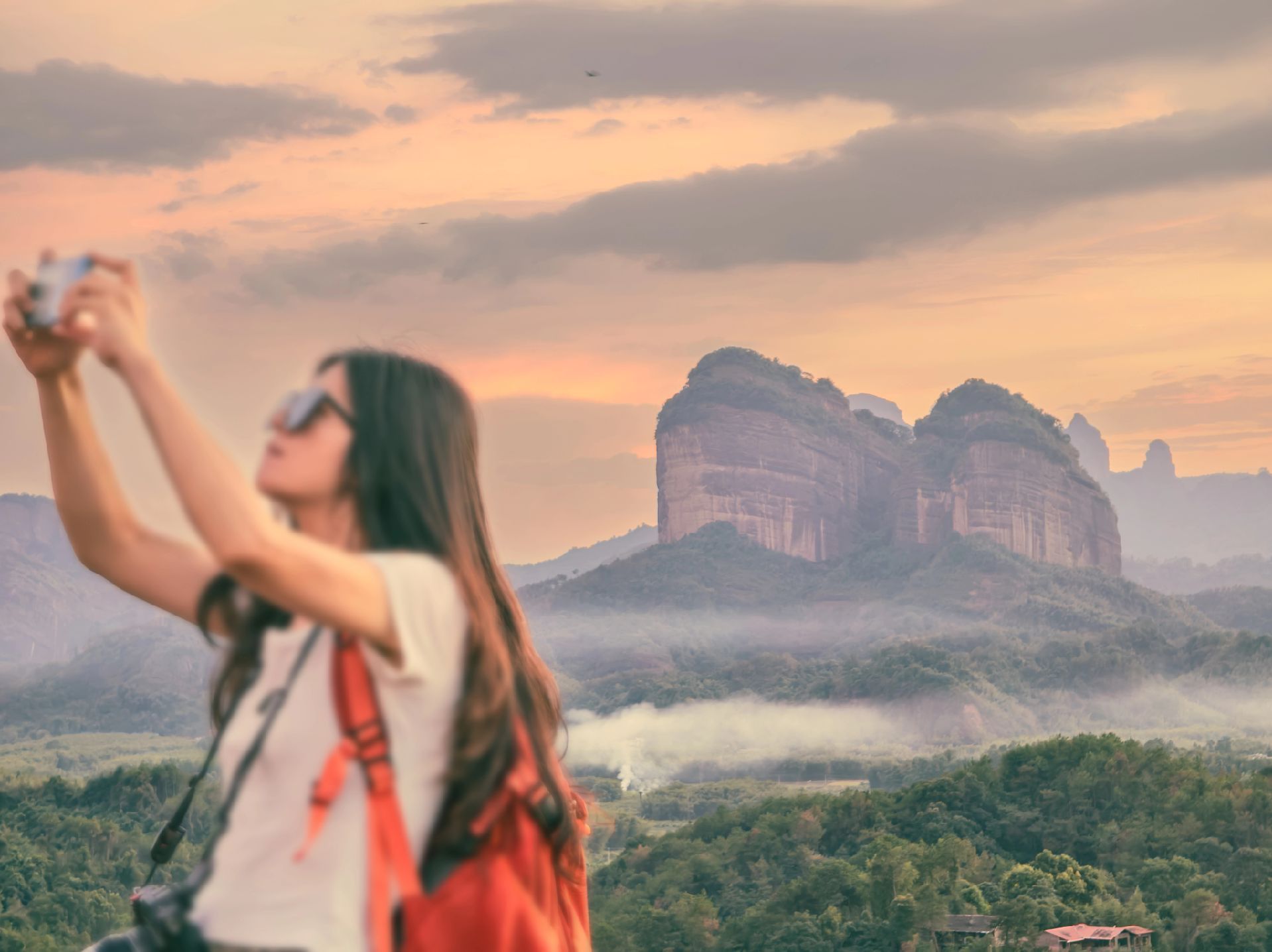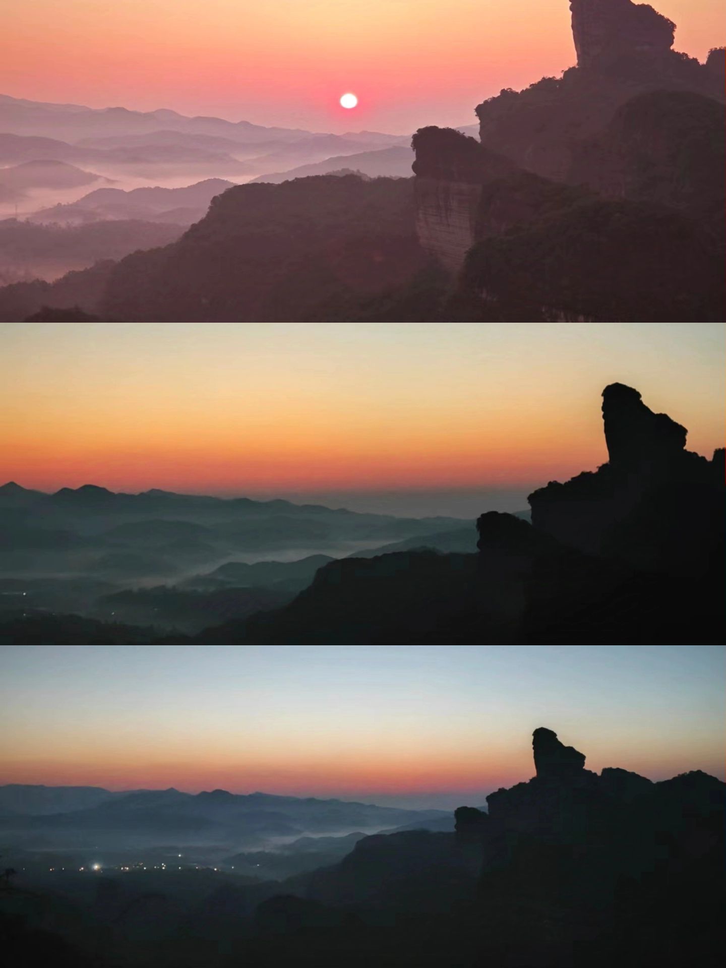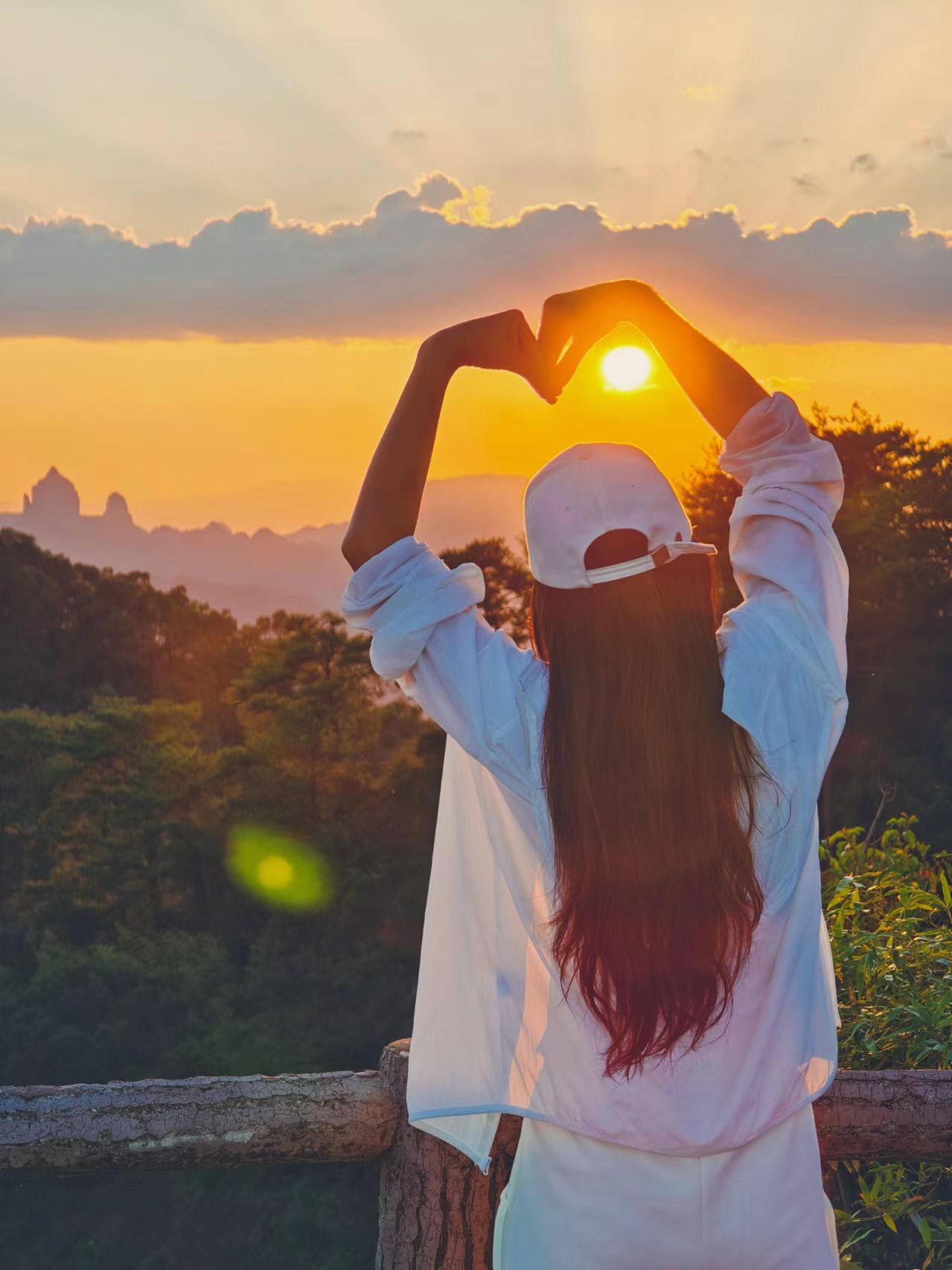 4、丹霞山景区挺大,分长老峰和阳元山,看日出在长老峰,看日落在阳元山,秋天的丹霞山拍照非常出片,可以提前联系好聆风山居客栈老板,做好攻略再出发
