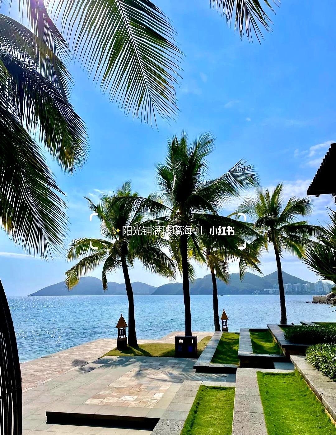 10点去太阳湾,椰林秋千+果冻海秒变马尔代夫!返程前到天涯小镇喝杯咖啡,蓝白房子配海景超适合发呆~