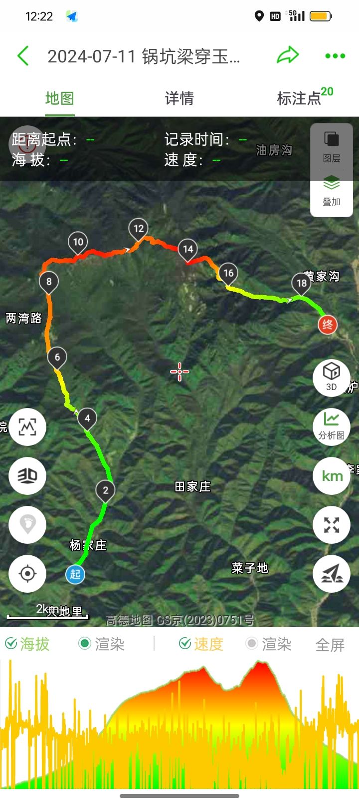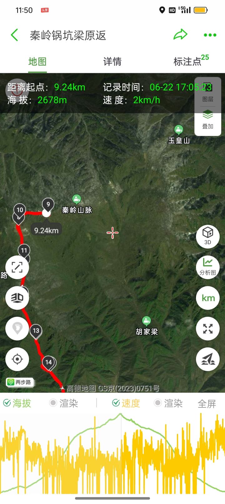 全程18.3公里,累计爬升1515米,累计下降1253,最高海拔2783米,最低海拔1498米。以(宝鸡凤县的杨家庄)为起点,途经松坪安、两湾路、锅坑梁顶、秦岭山脉、玉皇山、峡门关,到达终点(老庙)。锅坑梁路线成熟,玉皇山路荒,相对难走,是经典穿越线路。