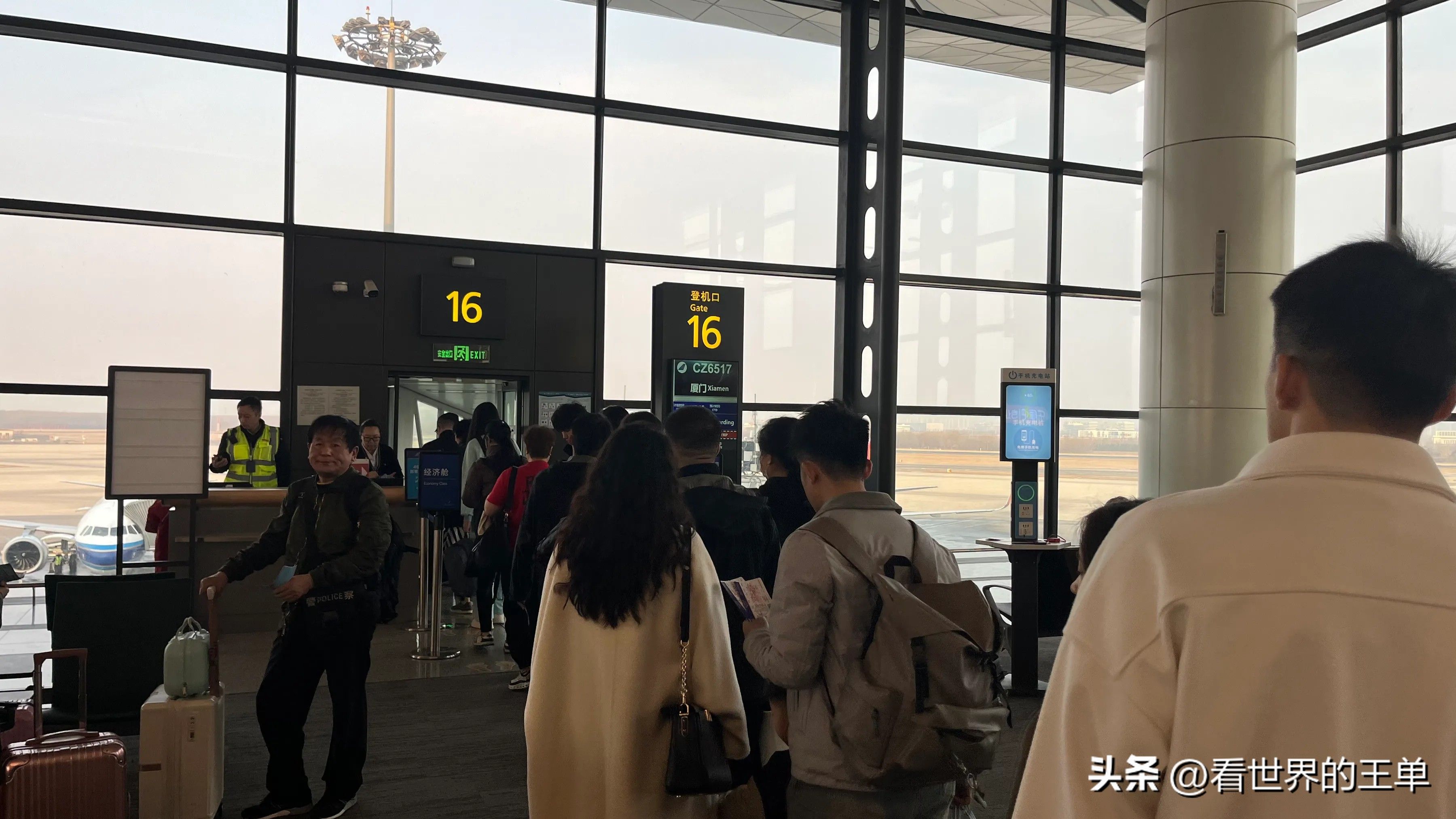 由于出发时间太早,我们都没来得及吃早餐,只能在机场简单地泡了方便面来填饱肚子。顺利办理登机手续后,我们来到了 16 号登机口,耐心等待登机。