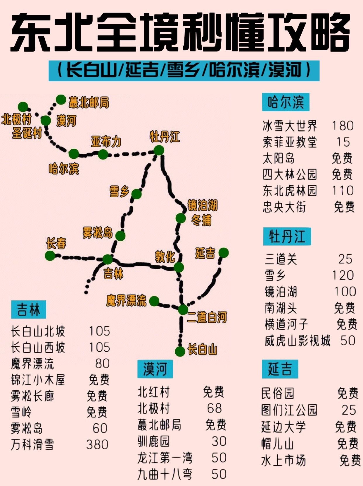 秒懂东北全境哈尔滨长白山漠河游玩攻略