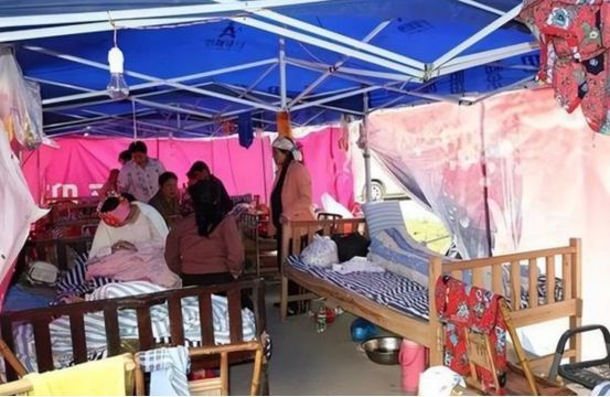 在这座坚韧温暖的寺庙中,所有人都守望相助,希望能共渡难关,而孕妇们也一个个被送上临时手术台进行生产。