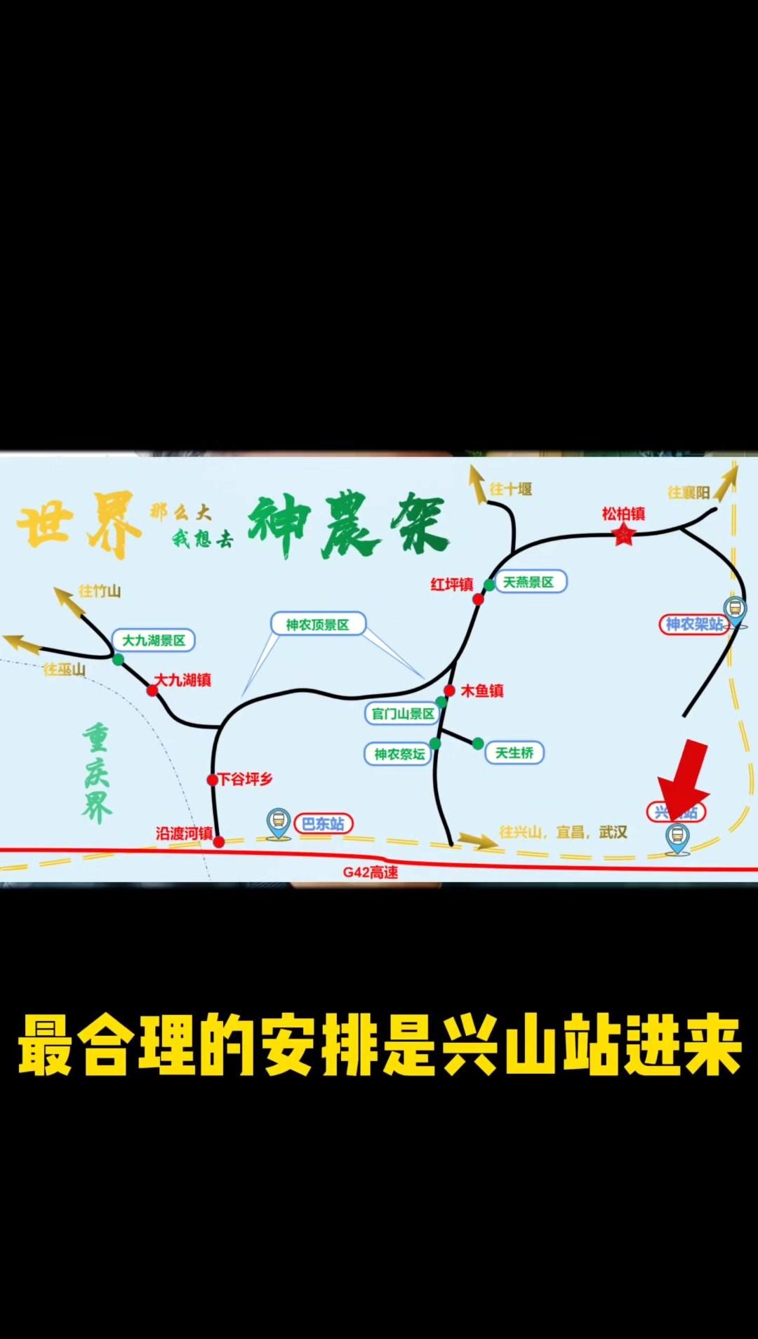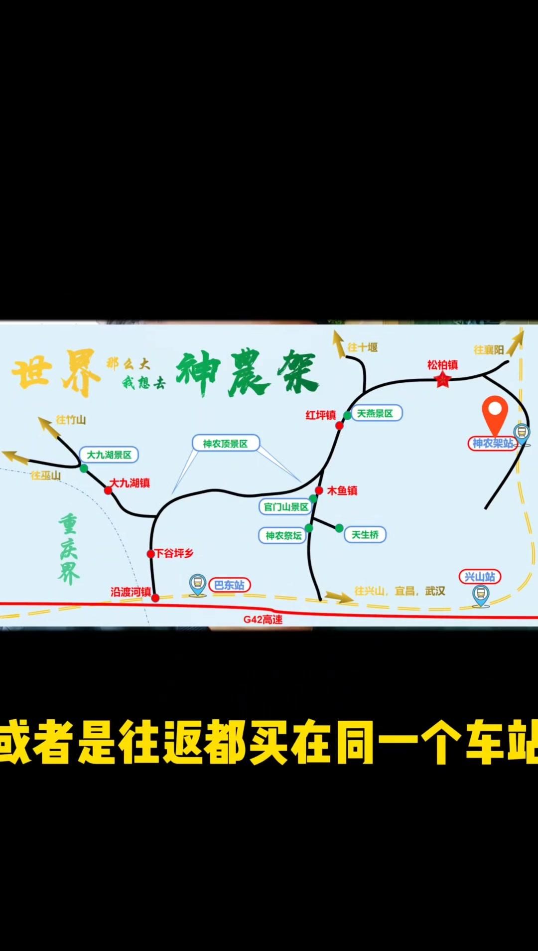 高铁票买到神农架站,或者是往返都买在同一个车站。神农架站距离木鱼镇两个多小时,距离大九湖镇4个小时。如果以旅游为目的,最合理的安排是新神站进来,巴东站回去,新神站距离木鱼镇车程一个多小时,巴东站距离大九湖镇两个多小时,可以全程不走回头路。