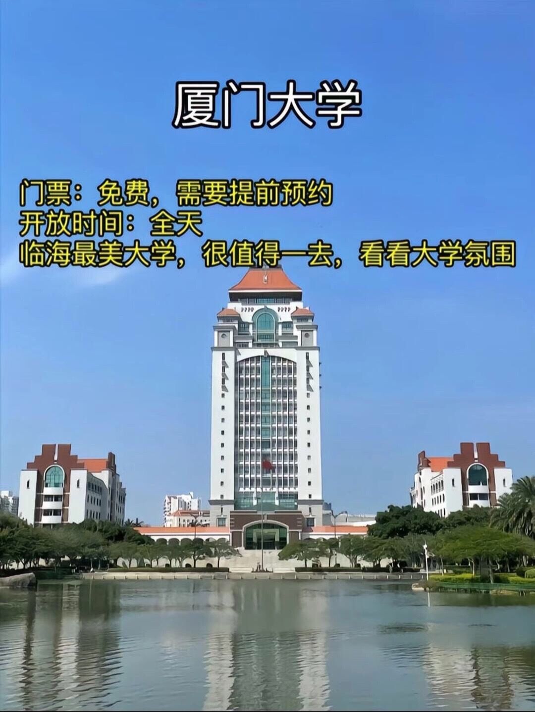 【思明区】:厦门大学、普陀寺、园林植物园、钟鼓索道、白城沙滩胡里山炮台、环岛路、演武大桥、沙坡尾、顶澳仔猫街、白鹭洲公园双子塔、八市