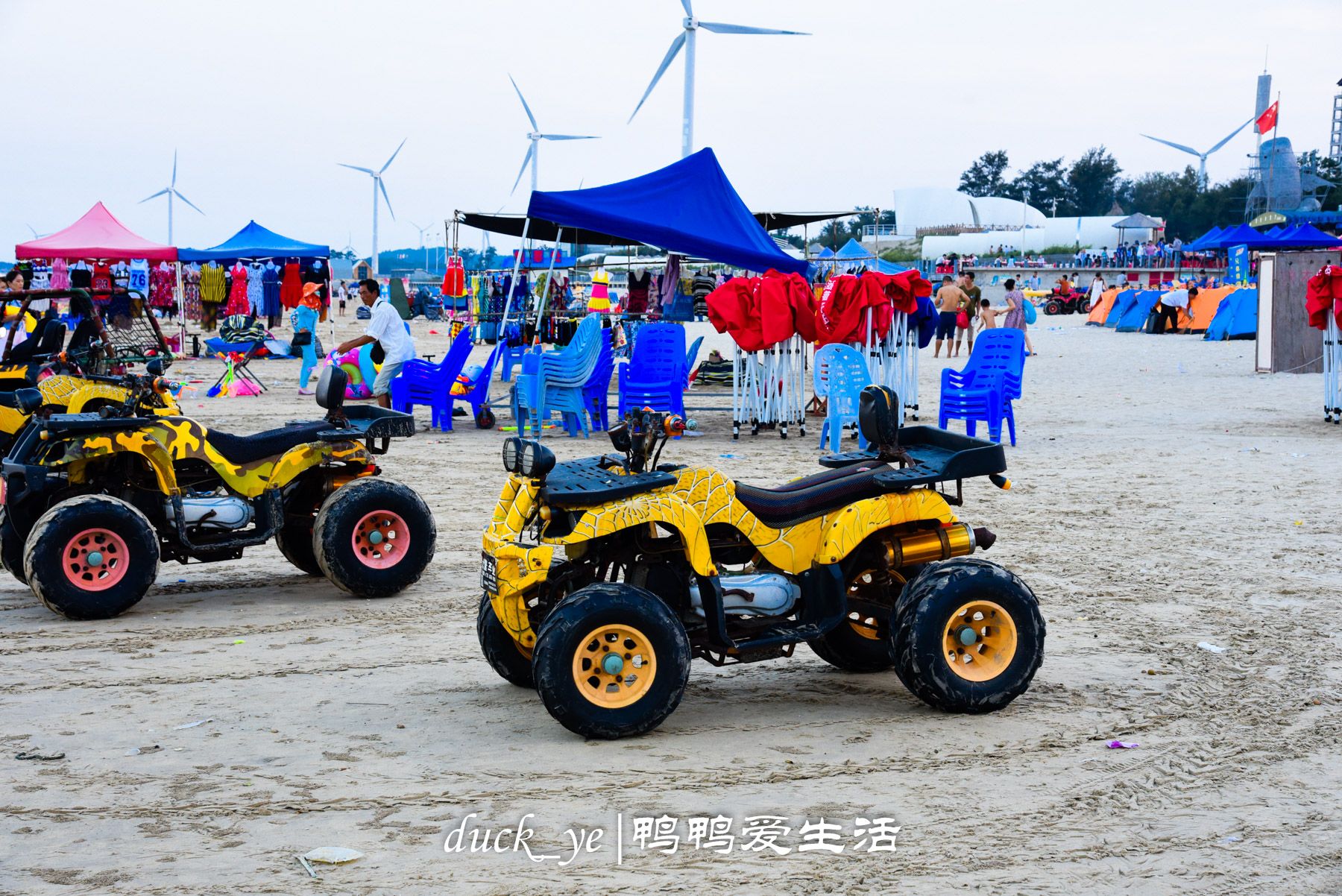 #夏日全民旅行记# #七月避暑游# #厦门潮人# @头条旅游 炎炎夏日,来海边踏浪玩水是最好的休闲方式。厦门虽然四面环海,但海滩面积并不大,再加上人多,越来越多的人选择去周边的海域游玩。而距离厦门仅1.5小时车程的六鳌翡翠湾,就是近几年新兴起的一个热门游玩地。六鳌翡翠湾,地处漳浦县闽东南沿海突出部,六鳌半岛鳌西村,三面环海,属半岛乡镇,东临台湾海峡,素有“中国佛罗里达海岸”之称,以海浪温柔、海水清澈、海沙细腻,犹如一湾碧绿翡翠而得名。比起别的地方沙滩,六鳌翡翠湾的可以用“宽广”来形容,翡翠湾海滩犹如一钩新月横卧东海之滨,正对台湾南部,海滩绵延6.8公里,海水退潮可在500米开外,整体落差不到4米。海滩非常宽广,因此在上面就有很多娱乐活动,比如沙滩车、沙滩排球、骑马,还有小朋友最喜欢的堆沙。也可以在沙滩上露营。而六鳌的风车,也为她增色不少。你能切身感受到那跨越太平洋的海风呼呼吹入大澳湾的感觉,伴着海滨彼岸的海浪一波又一波推过来。风车的叶轮迎风转动,别有一番悠闲滋味。而六鳌翡翠湾景区配合也修建了多项娱乐设施,有度假酒店、香草园、动物园、沙雕园等等,还不定时有人体彩绘表演,更加丰富了景区内容。
