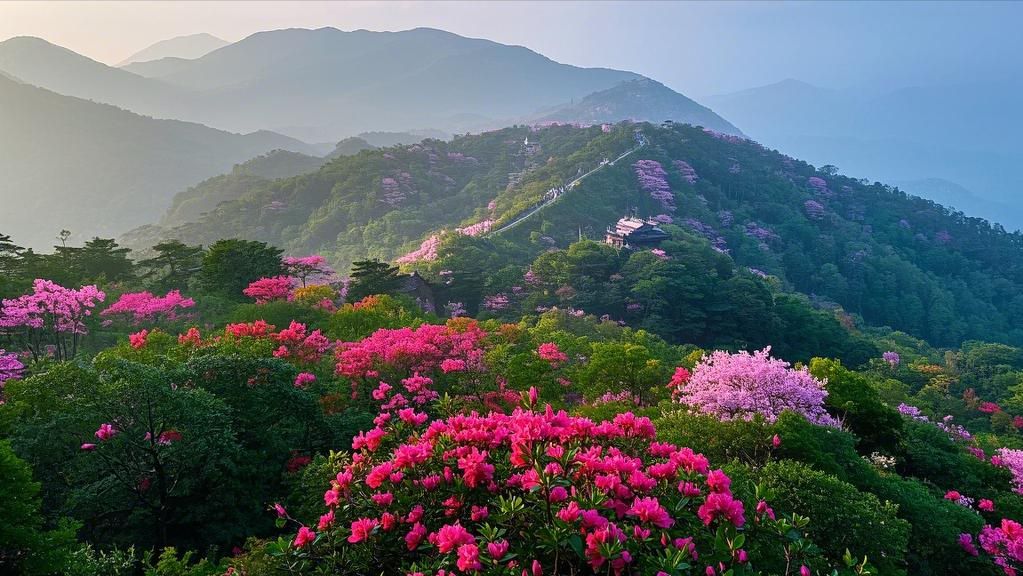 南岳衡山是道教圣地,在清明节前后,这里的杜鹃花海会一直延续到5月,期间还可以体验采茶。