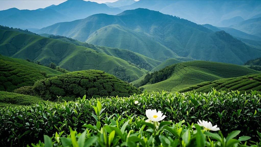 桂东莽圩山是高山茶园秘境,清明正值玲珑茶采摘季,山间云雾缭绕,梯田茶园如绿色波浪。