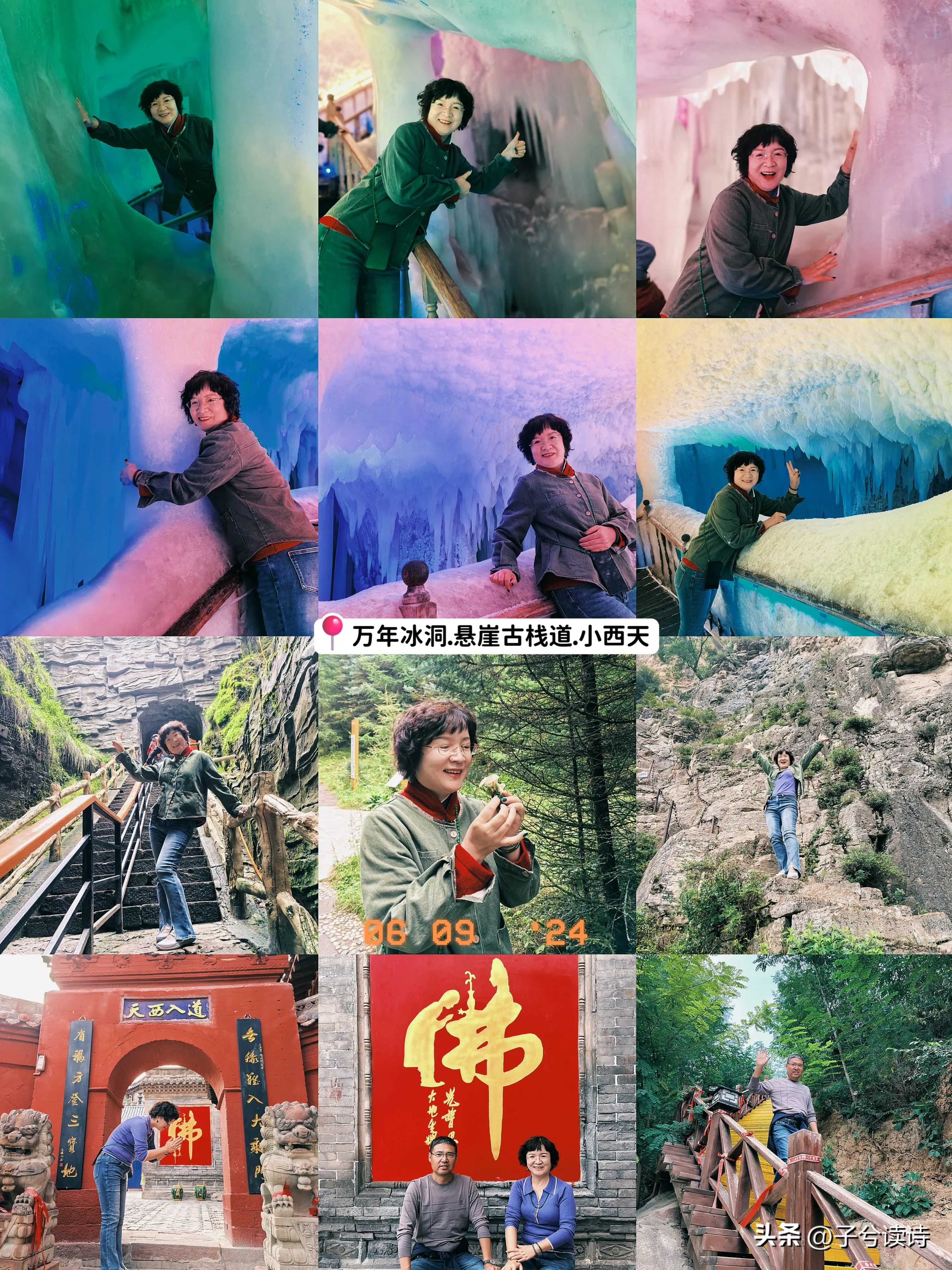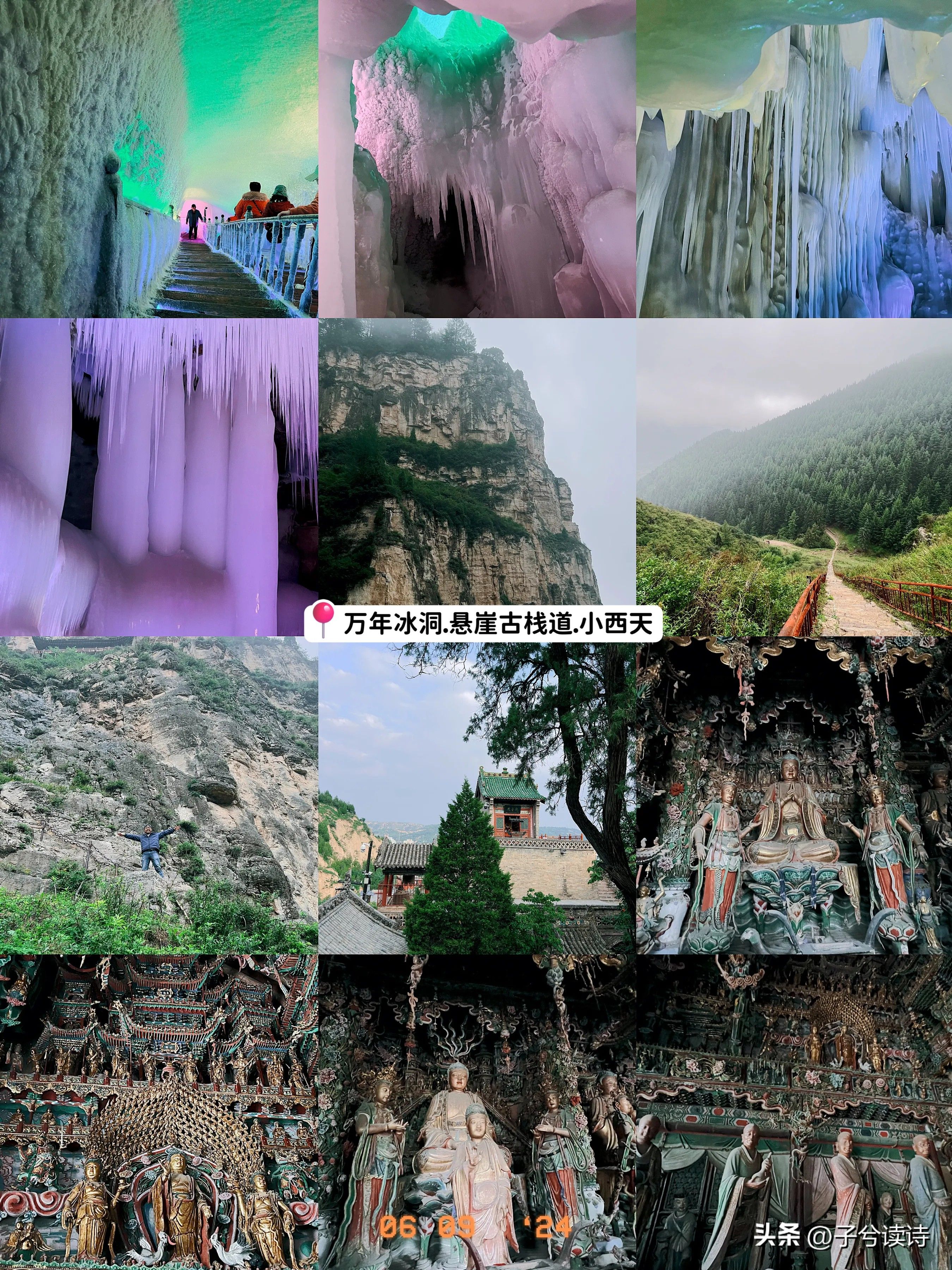#秋日生活打卡季#今天是山西旅游的第六天,今天在酒店吃完早饭,从宁武县出发,大概20余公里到达万年冰洞景区,来之前没有报太大希望,但现场看真是震撼,外面零上20度,里面零下5度,值得一提的是,如果你穿了毛衣进去,就不用租景区的红棉衣。现场看冰柱、冰花,仿佛穿梭在几百万年的时空隧道中,值得一来,随后走了10公里到达悬崖古栈道,记住下雨天景区不开,不要骑马,我爬台阶爬了半中腰,爱人爬上去了,要有体力才行。然后我们又驱车300多公里到隰县小西天看千佛庵悬塑,形态各异,栩栩如生,在小小县城藏着这么精美的寺庙也实属罕见,赞叹劳动人民的智慧。随后我们又驱车100公里入住吉县,已经天黑了,今天跑的实在扎实,问酒店服务人员,对面一家小馆子,吃了当地有名的小吃饸饹面和贴葫芦,这家小店比较有名,记住一定让师傅把面煮软点,不然又厚又硬吃不惯,味道还是蛮不错的,山西吃的不贵,我们要的中份都没有吃完,小菜也是小份的,量很大,才32元,总之山西的美食好吃不贵,我们又在隰县买了当地有名的玉露香梨,又大又水,8个45元。又是充实的一天呀,准备睡觉了。#山西必打卡之地# #山西旅必去景# #山西天气真好# #山西风光打卡# #一起来山西# #隔着悟空游山西#