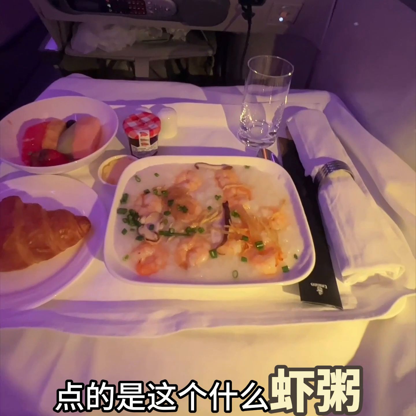 第一程因为我是半夜12点半的飞机,所以晚餐我就没有吃,那会子实在太困了,它有一个云南菌菇小火锅,真的很好奇。到了早晨的时候点的是什么虾粥真的很难吃,一点味也没有。等着第二层的时候还在那幻想云南小火锅,人家菜单早就换了。这玩意是一堆冷了吧唧的牛肉和鸡肉,反正能吃。到了正餐的这个小汤点还是不错的。主菜我点的是个羊肉。真的很一般。不过餐后的草莓、泡芙、甜点倒还可以。回程真的吃的相当爽!因为我跟老妈都是饿着肚子上飞机的就想着多吃点。