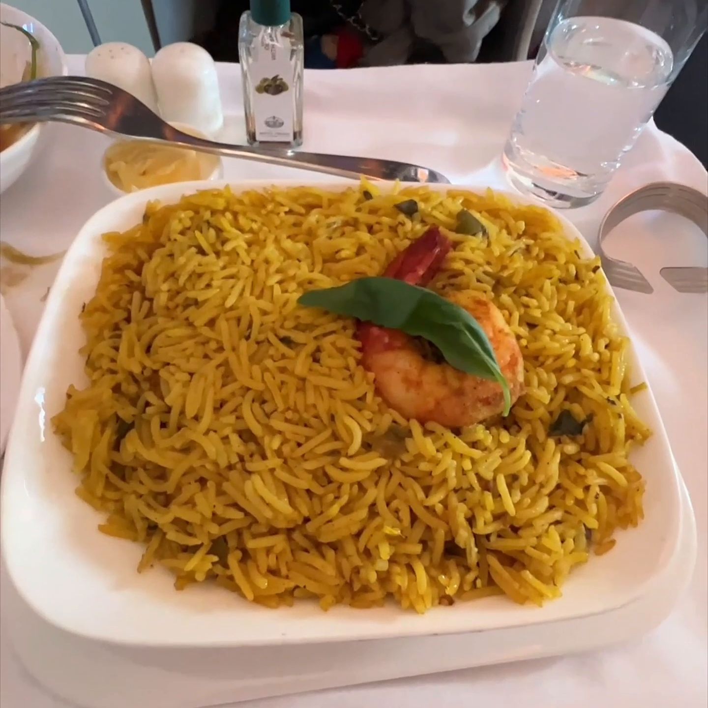 我这个餐前鳕鱼奶油汤,真的好香好好喝。老妈点的是个什么牛肉,味道也不错。主菜是阿联酋一个什么比较传统的餐食,就大米饭配着虾,里面有咖喱还有番茄,因为太饿了就觉得也挺好吃的。这个苏打苹果兮兮兮兮的菜要很好喝,我老妈点的是个什么鸭子,味道也不错。