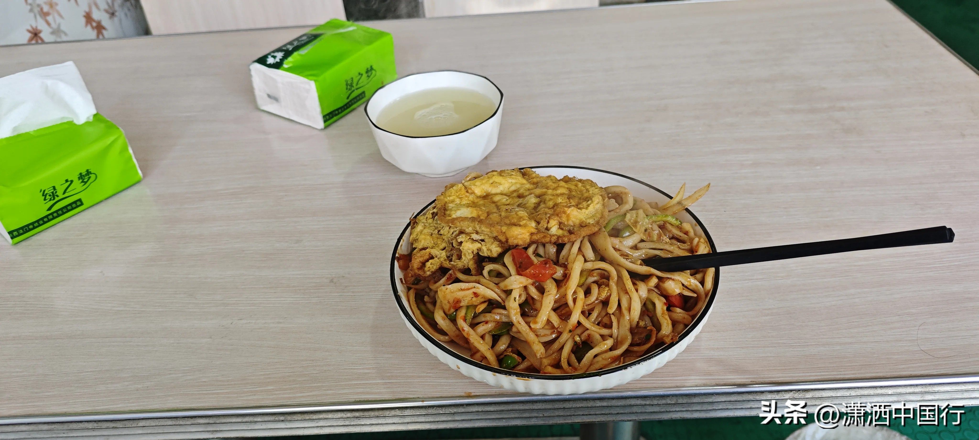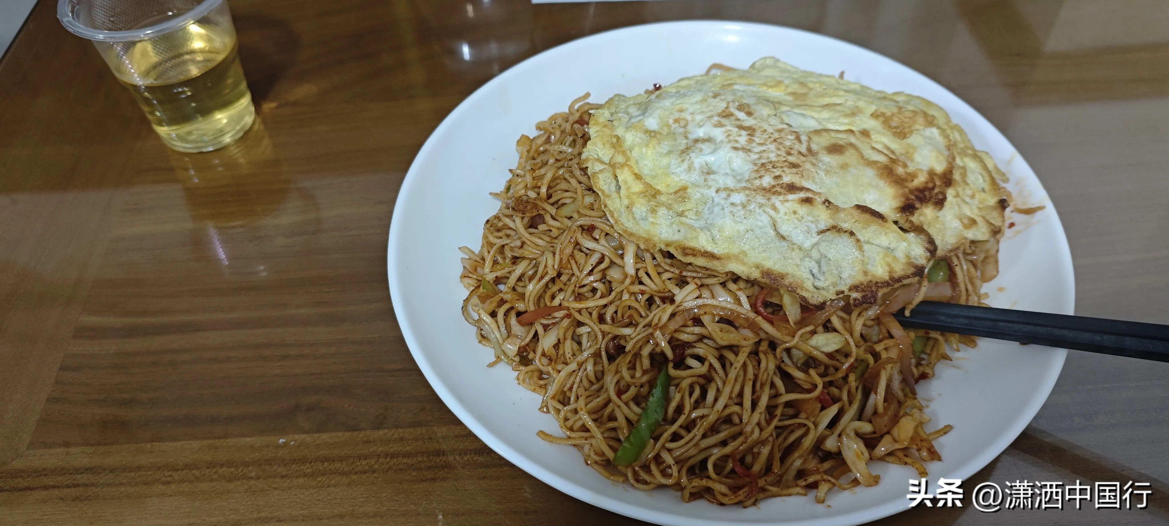 有些饥饿感了,便在镇上找了家馆子用餐。我点了一份炒面,没想到这价格比想象中要贵些,一份竟需12元。