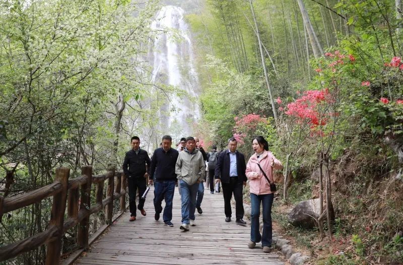 随后采风团走进大别山彩虹瀑布景区,在讲解员的带领下畅游景区,近距离感受景区的活力,详细了解景区旅游开发利用现状和经济效益。