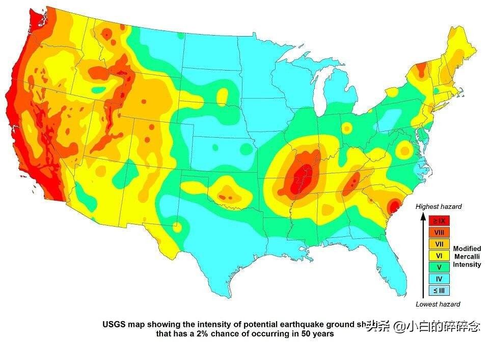 3. 上面已经列举了美国地震中危或高危地区,这其中包括美国中部的新马德里断层线。出于或者有心的同学可以访问美国地质调查局网站来查询你所处的州或地区发生地震的可能性。