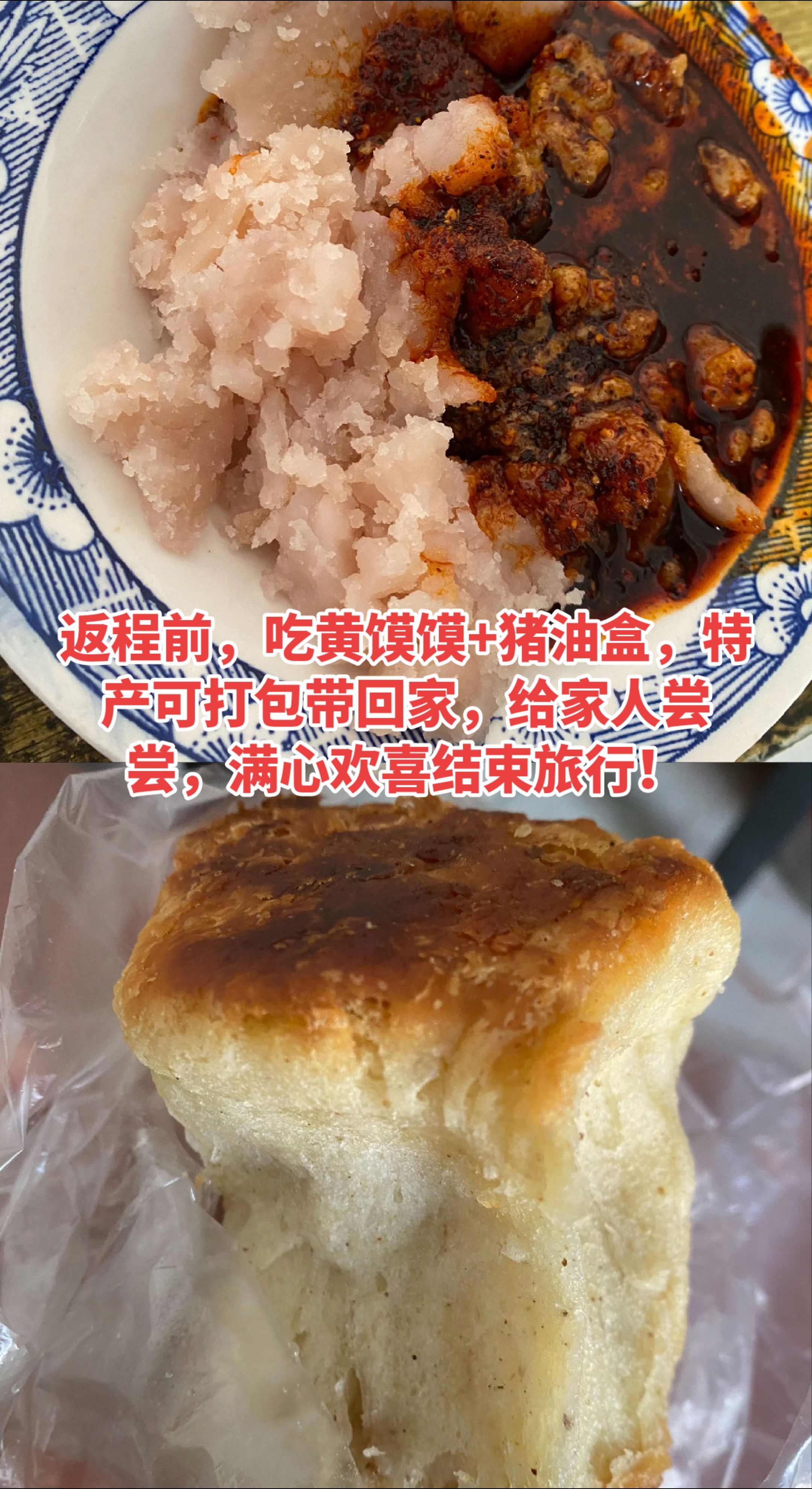 • 晚上6点:返程前,吃黄馍馍+猪油盒,特产打包回家,给家人尝尝!