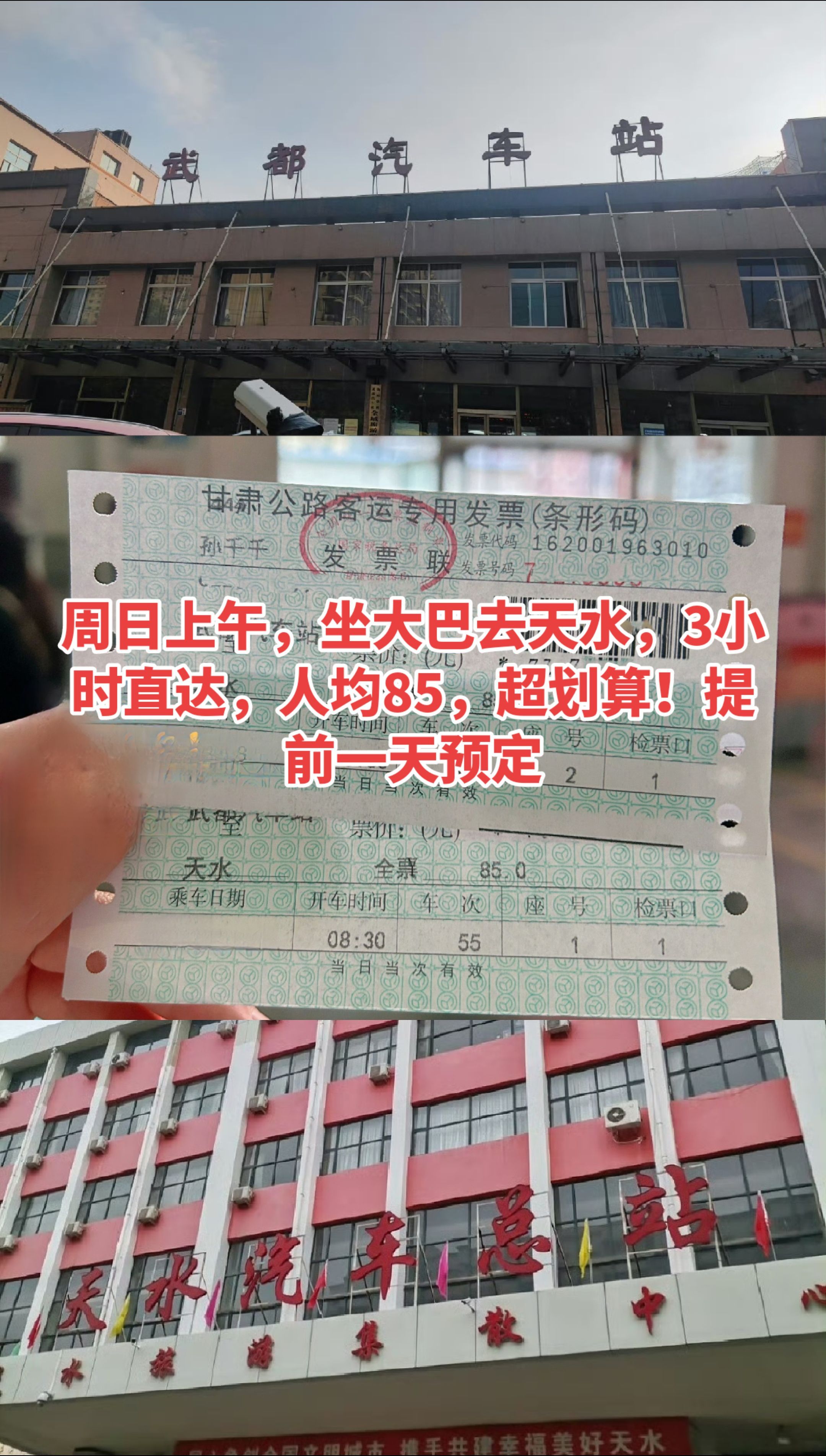 • 上午7点:客运大巴去天水,3小时,人均80元,超划算!