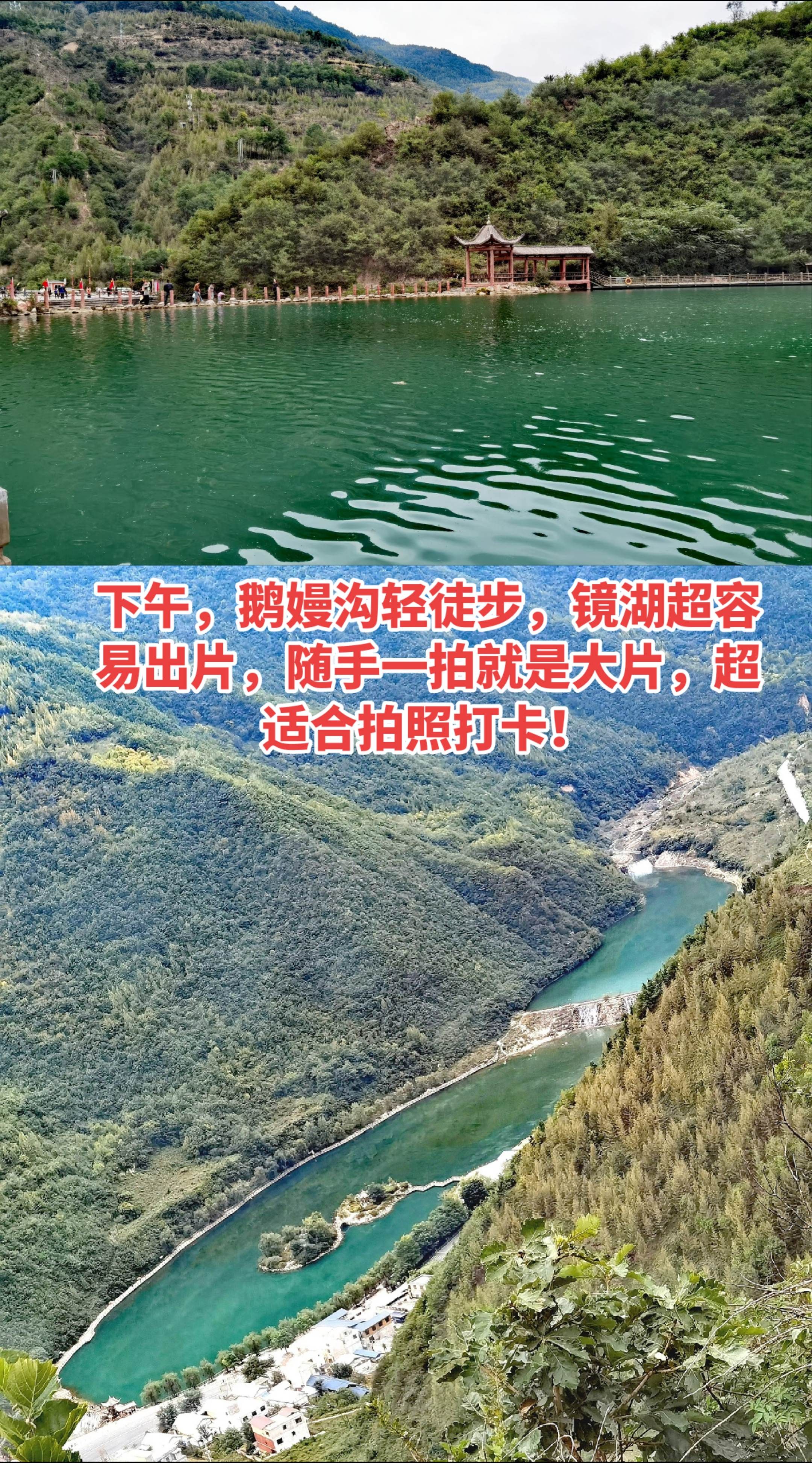 • 下午3点:鹅嫚沟轻徒步,镜湖超容易出片,随便一拍就是大片!