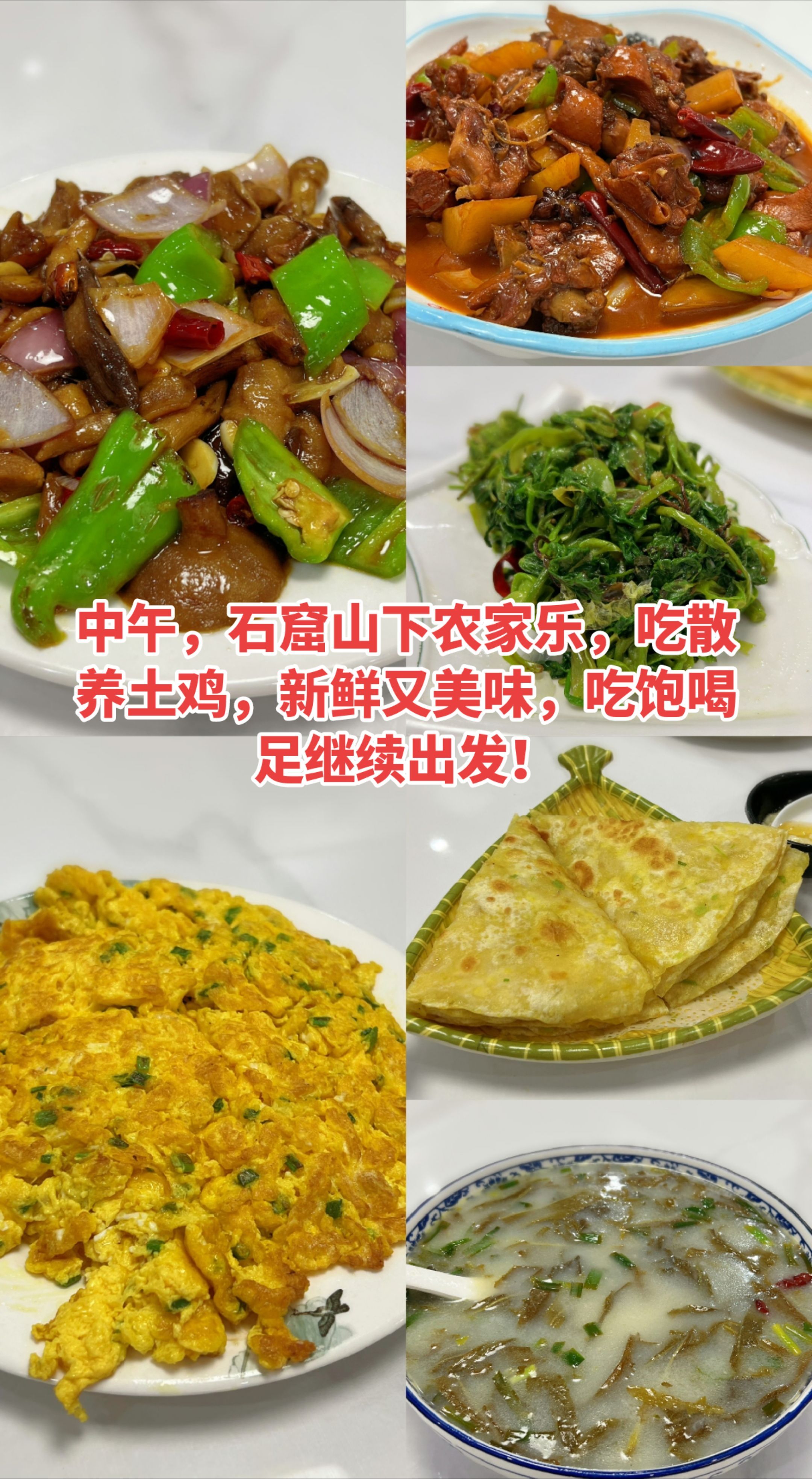 • 中午12点半:石窟山下农家乐,吃散养土鸡,新鲜得很!