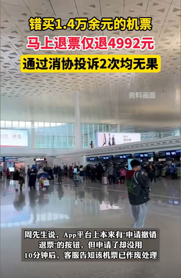 (信息来源:NXTV都市阳光2024年12月6日关于《男子错买1.4万元机票,马上退票仍被扣9240元》的报道)