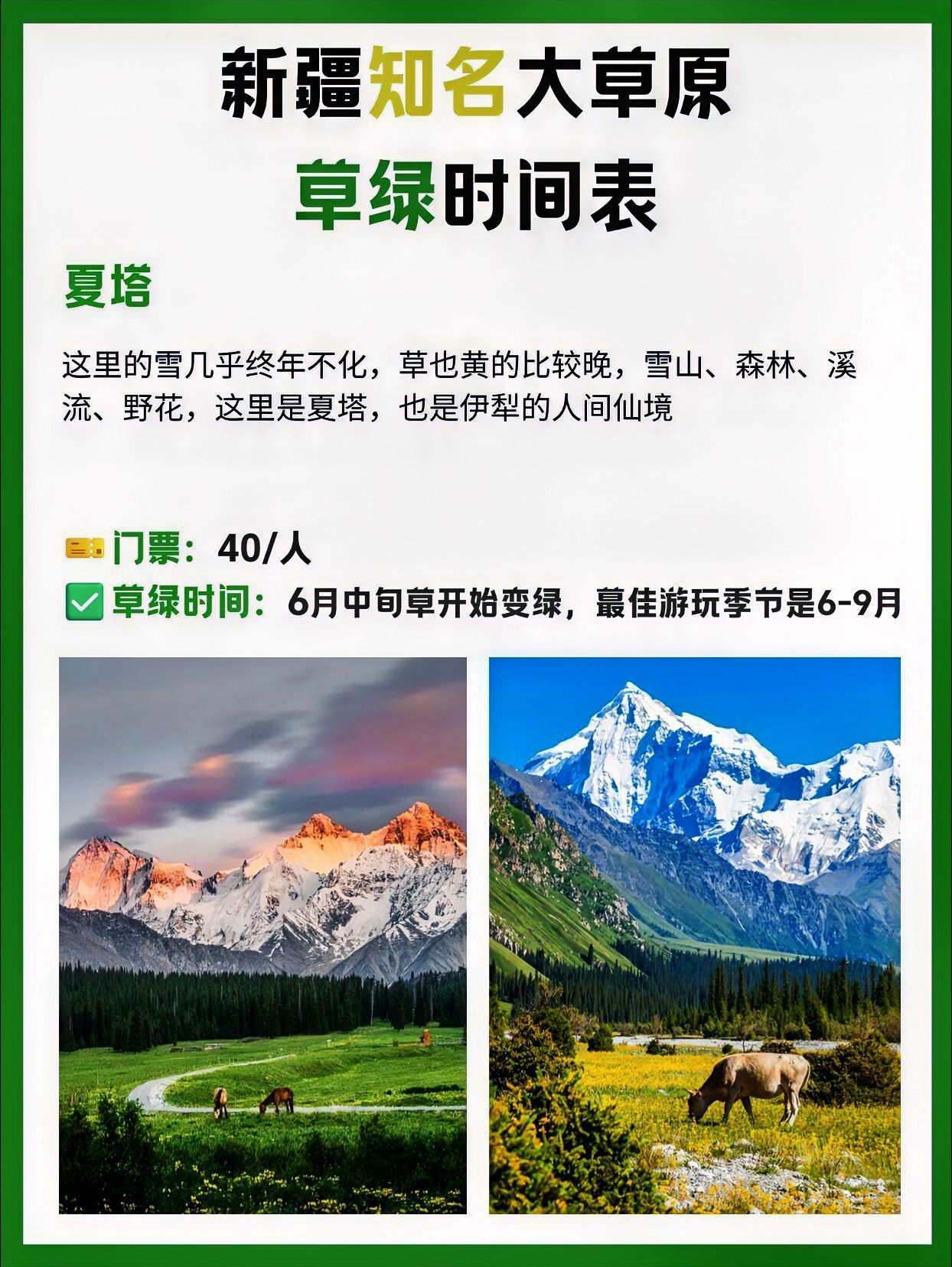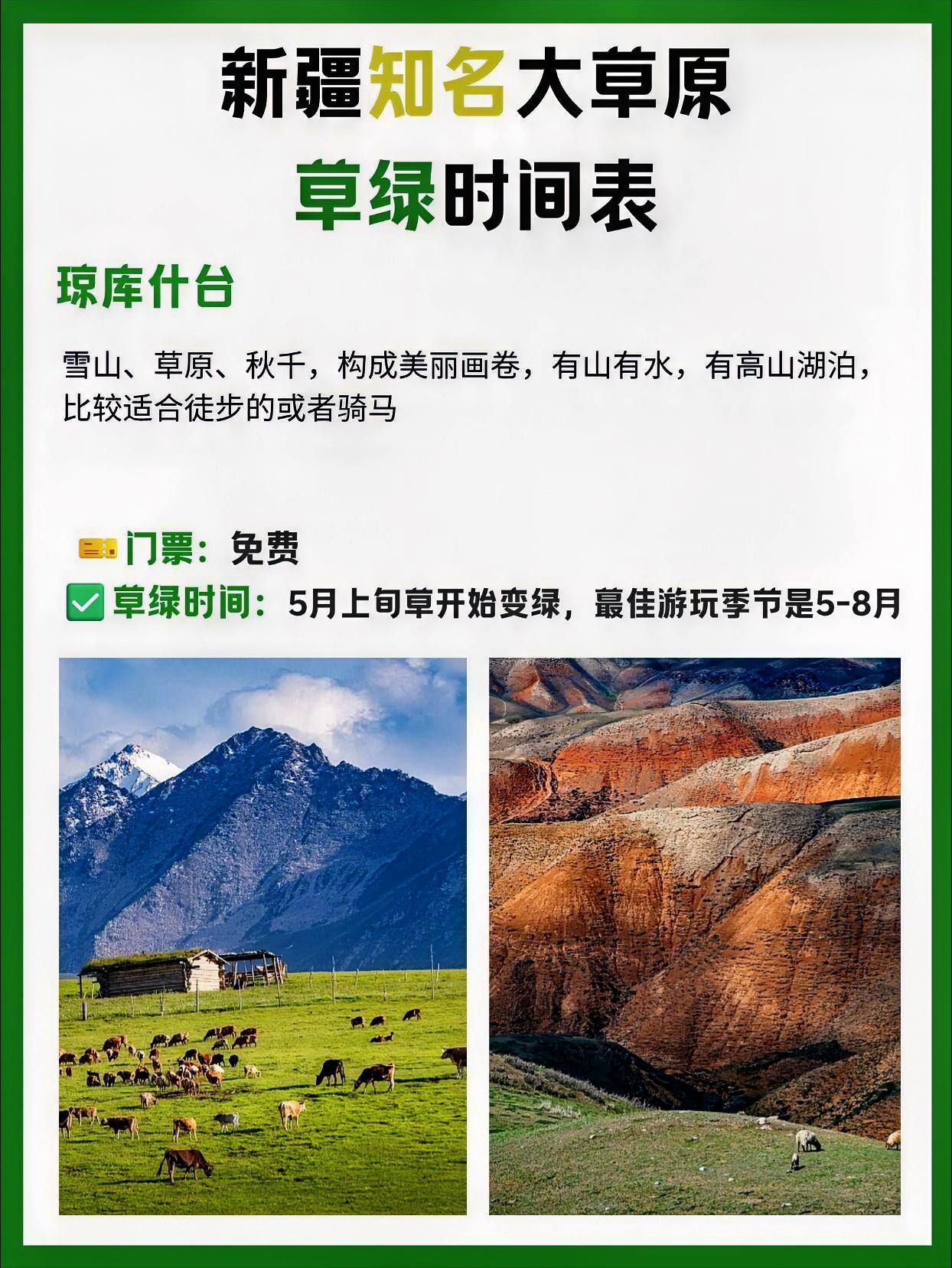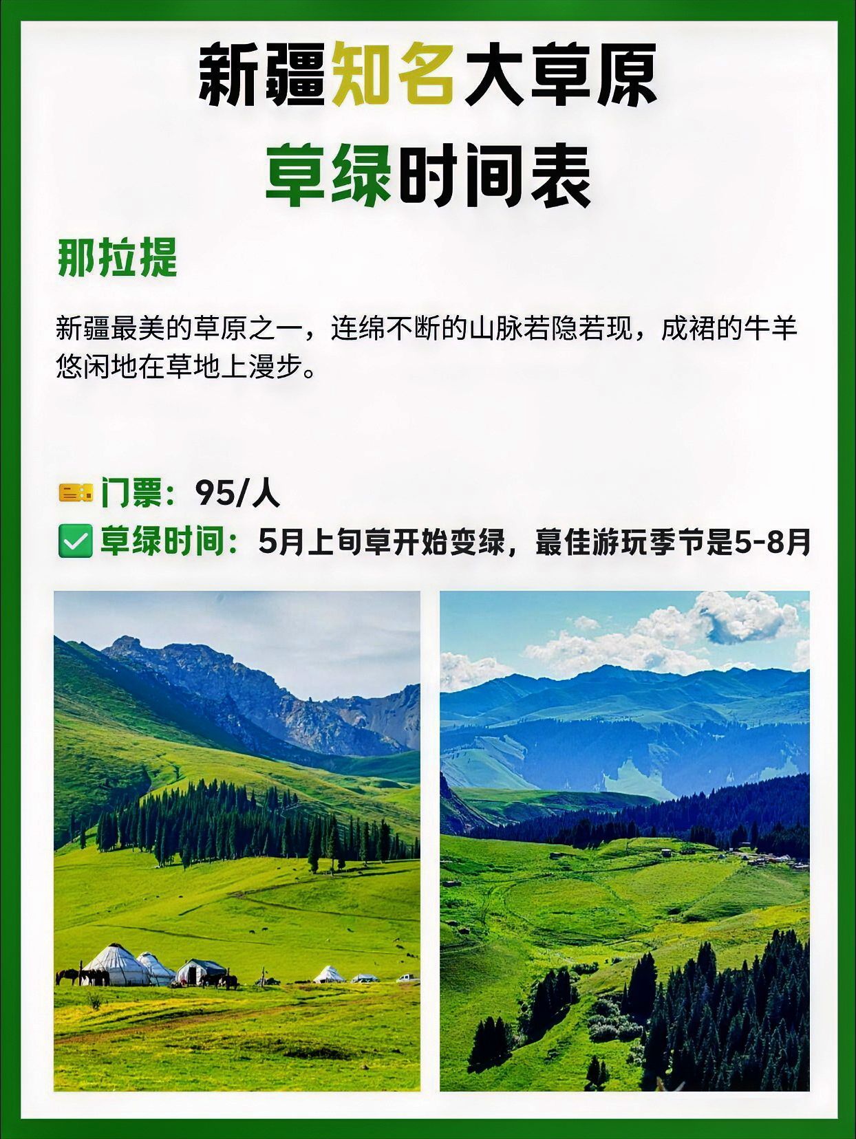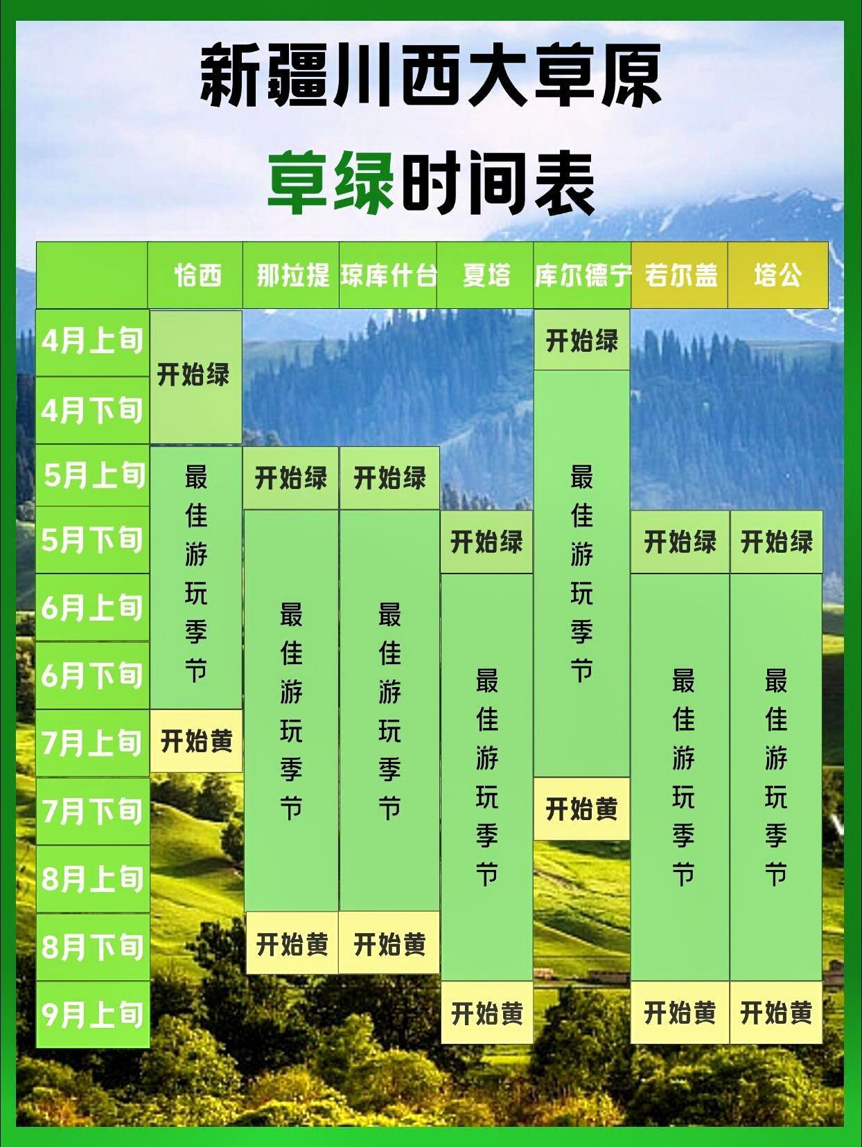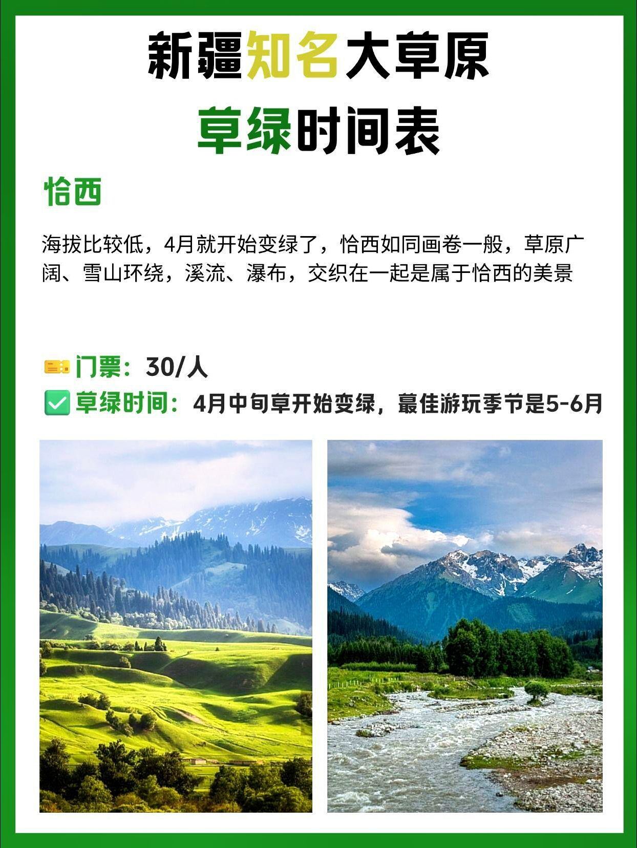 草绿时间帮你码好了,新疆川西草原这么玩!夏天是去草原的好季节,来新疆+川西,欣赏“你的阿勒泰”~4月开始,草原进入草绿期,码住这份草绿时间表,别错过最佳游览时间~