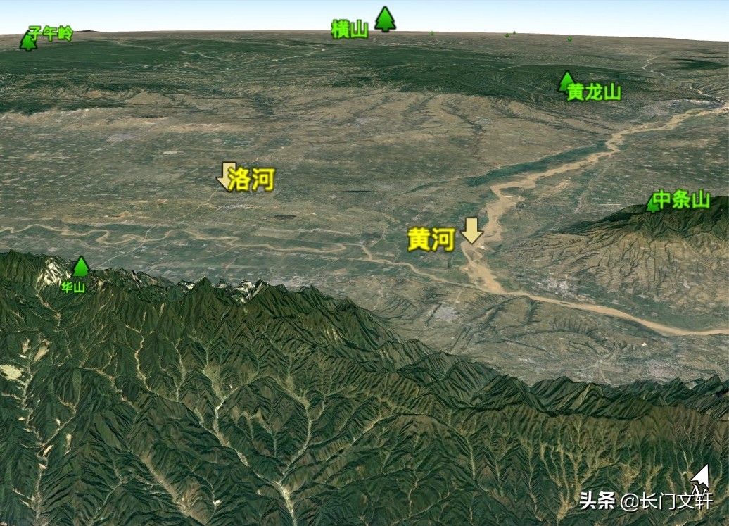 在横山、子午岭、黄龙山之间的狭长地区 ,由千长时期的 流水切割,到处都是纵横的沟壑,千沟万壑使这里显得支离破碎。在子午岭、黄龙山以南,就是关中地区;两山对于关中,起着明显的拱卫和屏障作用,阻挡着北方游牧民族的向南进攻。