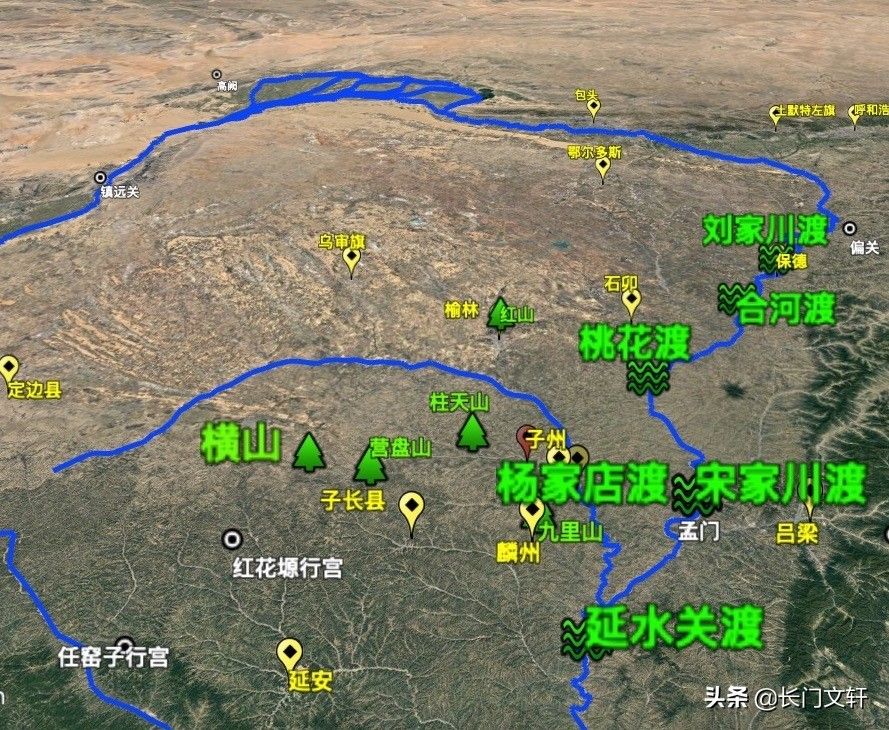 在陕北黄土高原地区,有三条具有重要战略意义的山脉,即横山(白于山)、子午岭(桥山)、黄龙山(梁山)。横山面积约一万多平方公里,子午岭近一万平方公里,黄龙山则有 6000 平方公里,合计2. 58 万平方公里,几乎占陕北地区总面积的 1/ 3。这三列山脉 相互组成一个马蹄形状。这马蹄形的南端是开口处,正掩护着关中平原的北部,以此地位重要 。