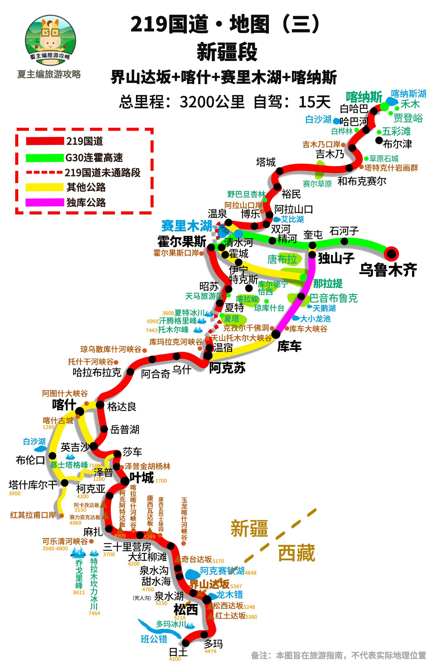 《219国道全段地图·高清版》:广西-云南-西藏-新疆,各路段途经地、景点、海拔详解!